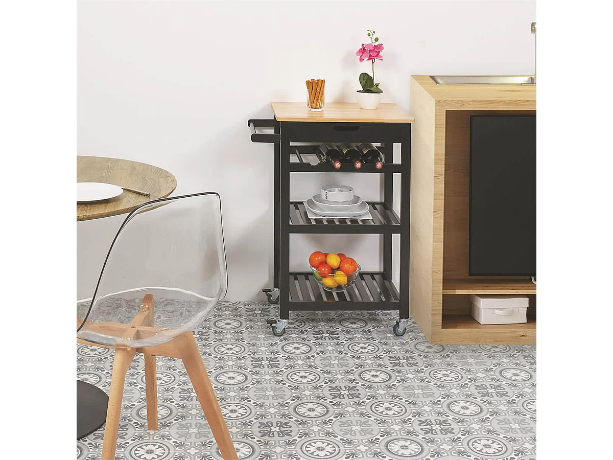 KWIT - Desserte à Roulettes Noire avec Porte-Bouteilles