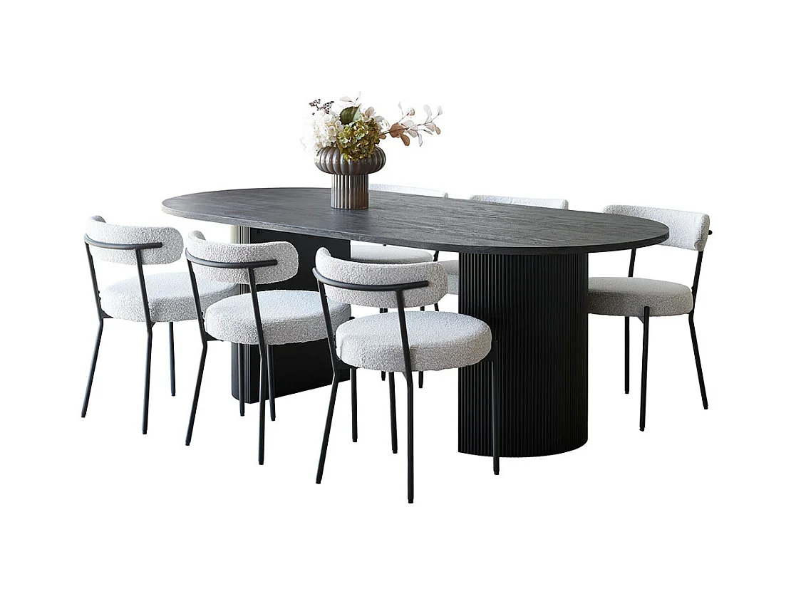 Kyoto ensemble pour salle à manger table à manger 100x210 cm brun foncé et 6 chaises bouclé blanc.