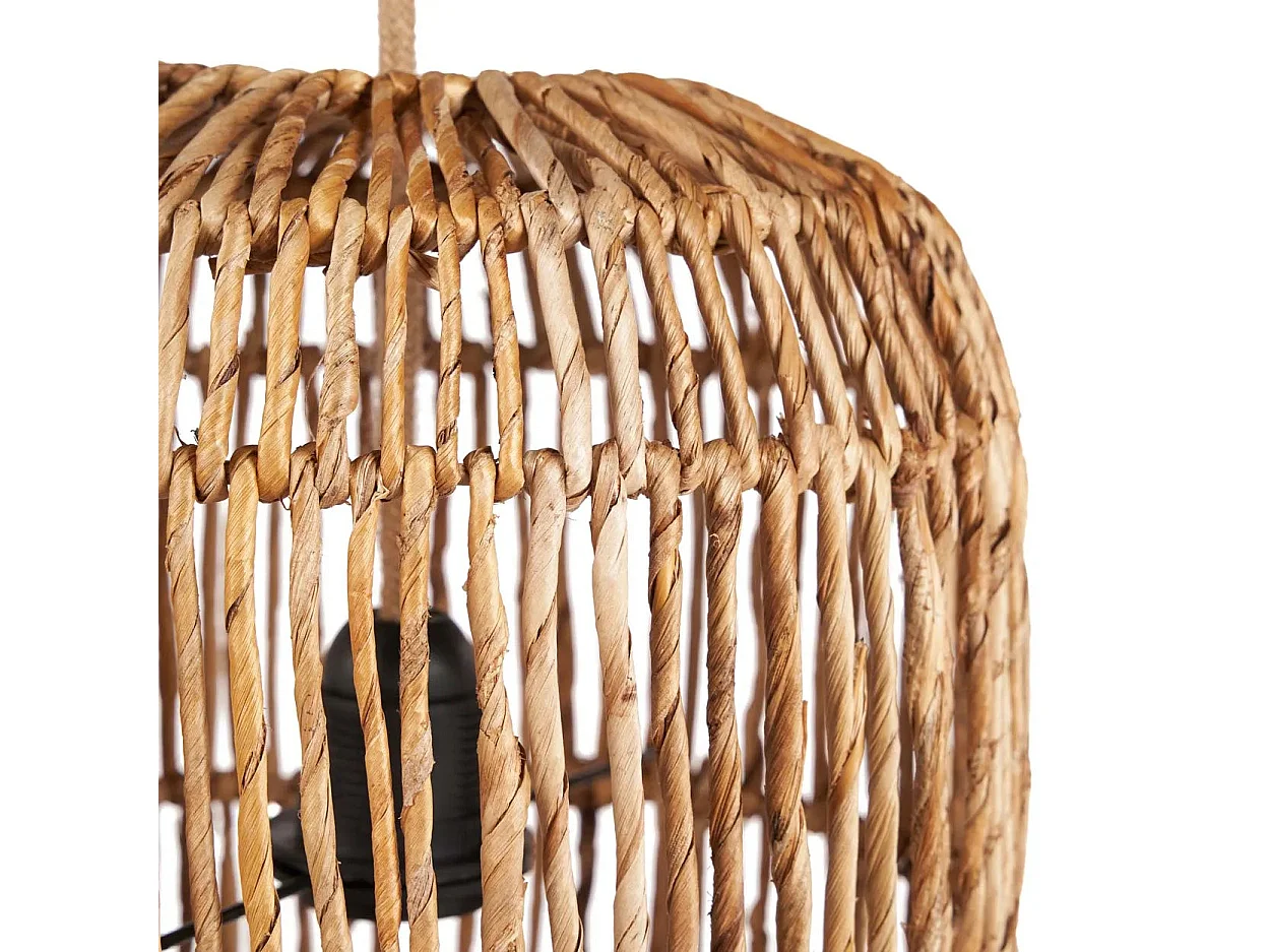 Lustre Flik avec 4 abat-jour en tissu en forme de feuille en rotin et noir 4xE14 ø102