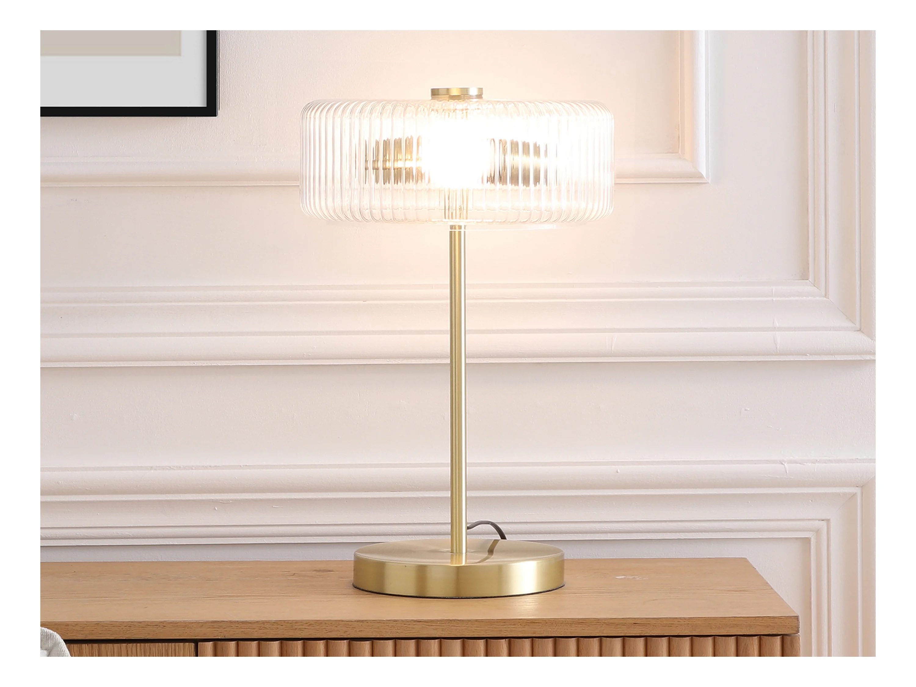 Lampe à poser en verre et laiton brossé doré - D.30 x H.49 cm - LACAYA