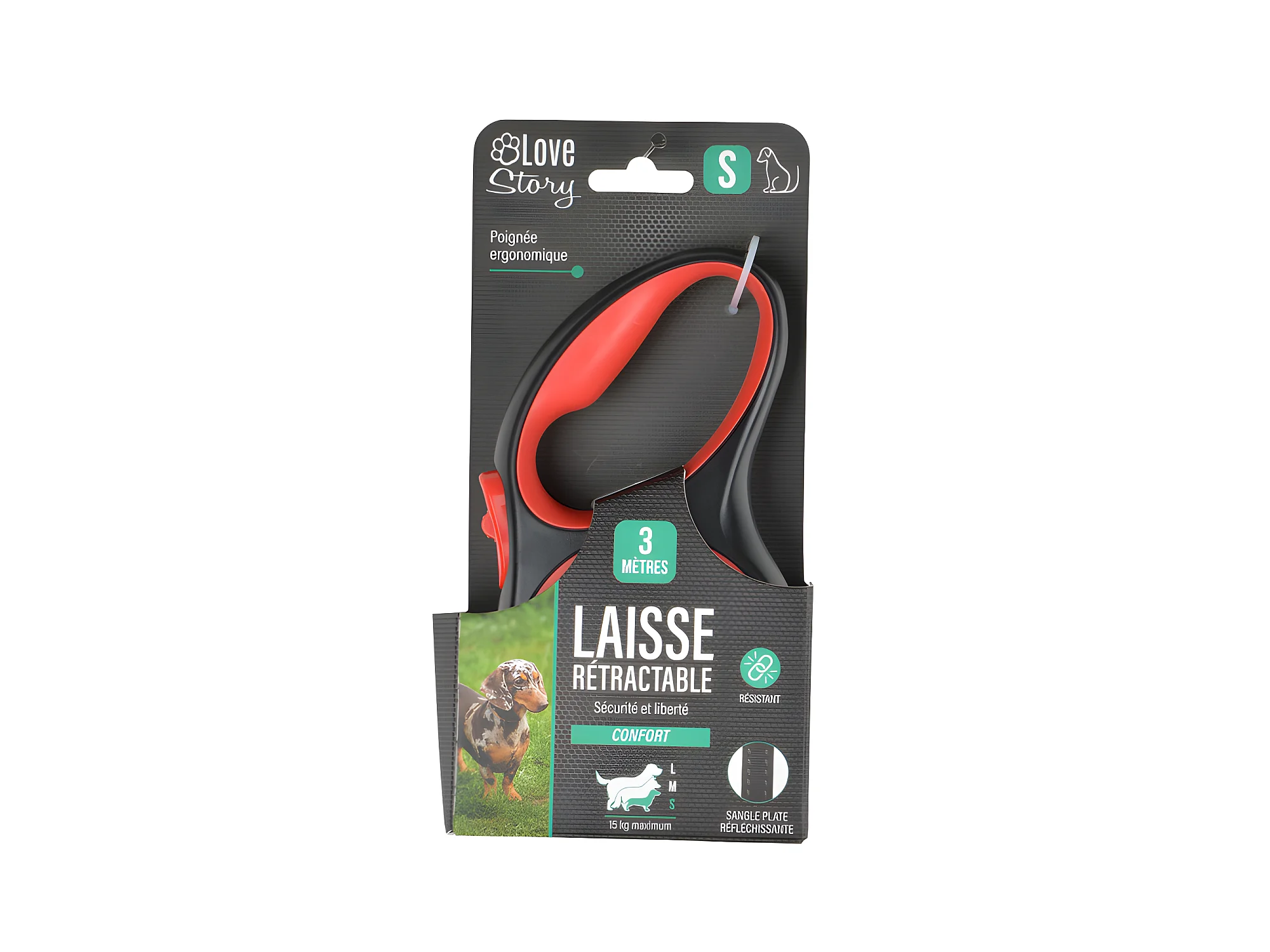 Laisse Rétractable Chien "Résistante" 16cm Rouge