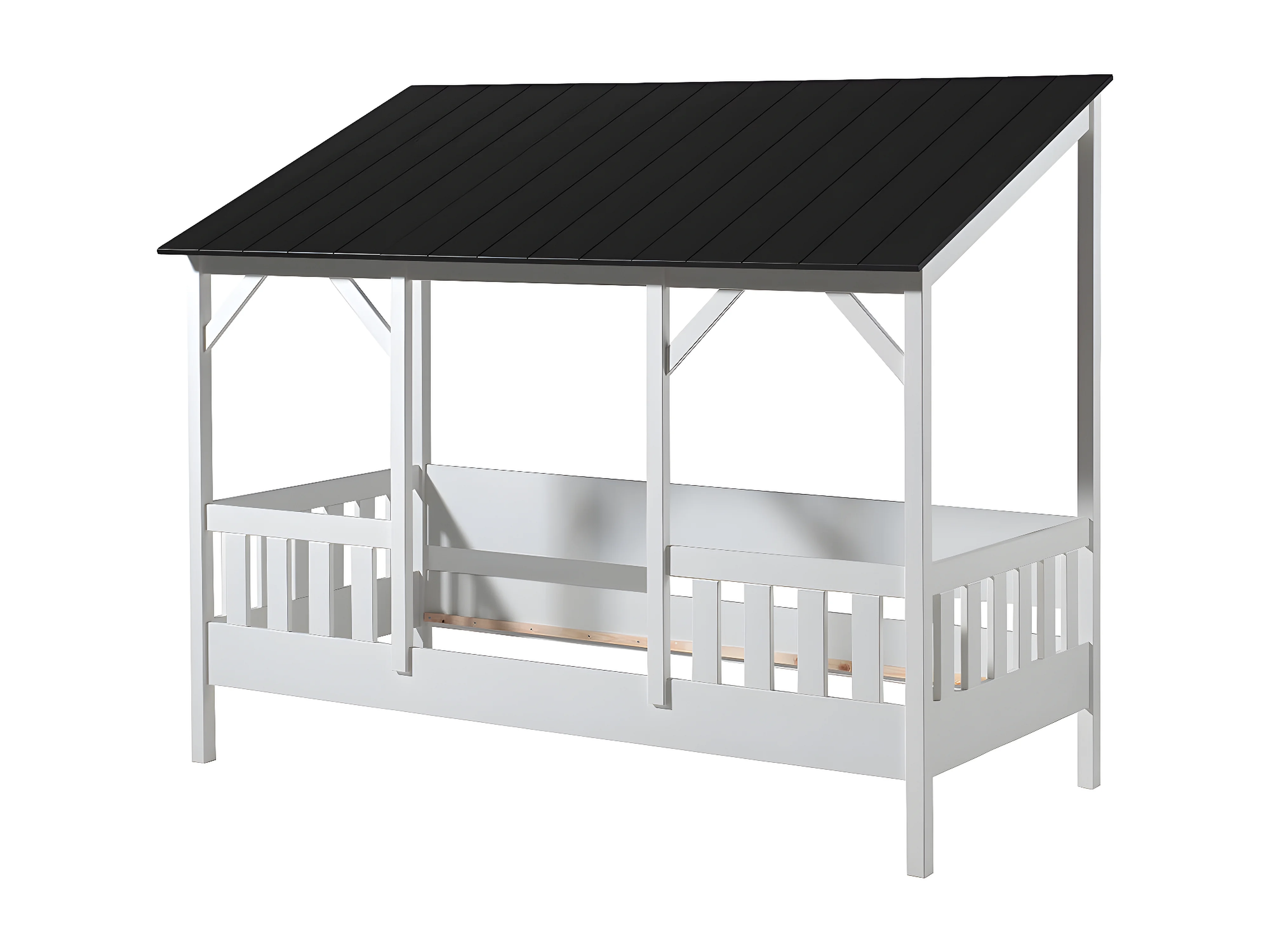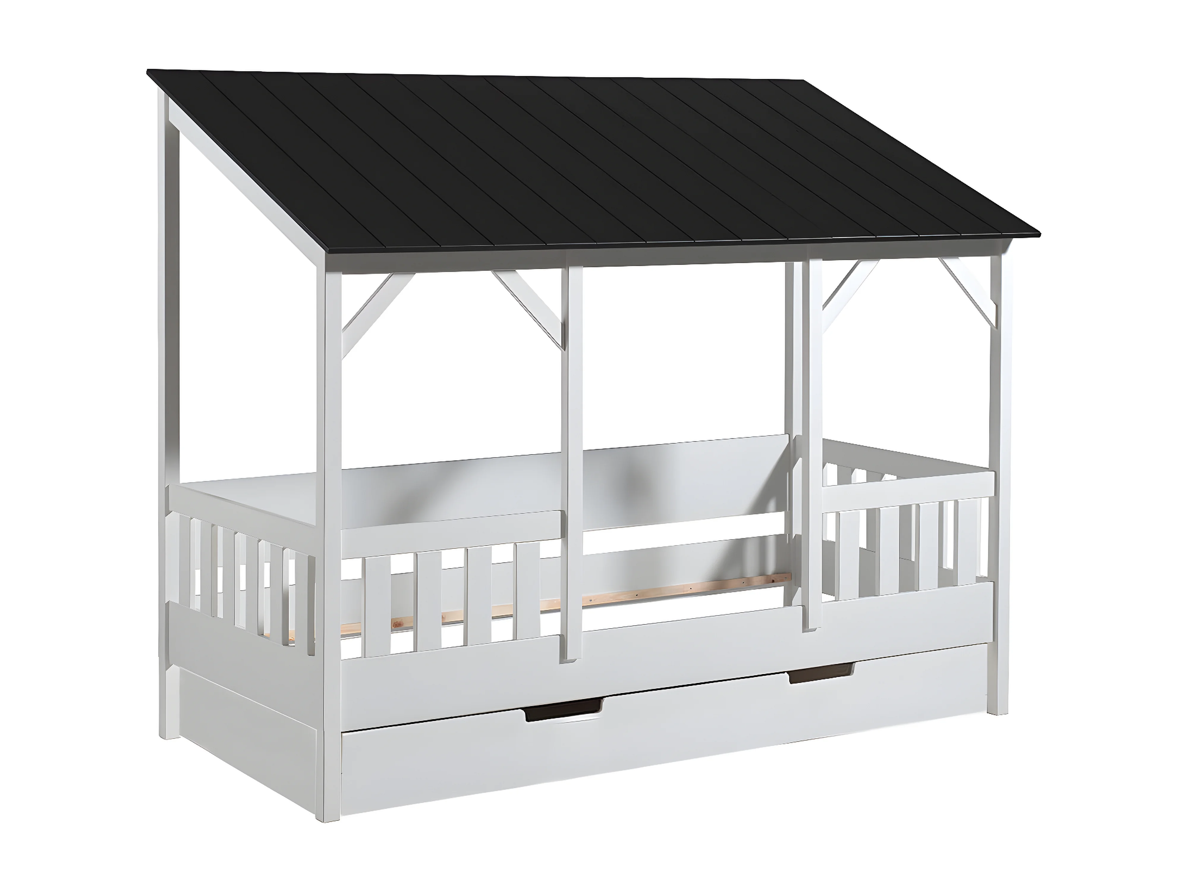 LAKA - Lit Maison 90x200cm Blanc et Noir avec Tiroir