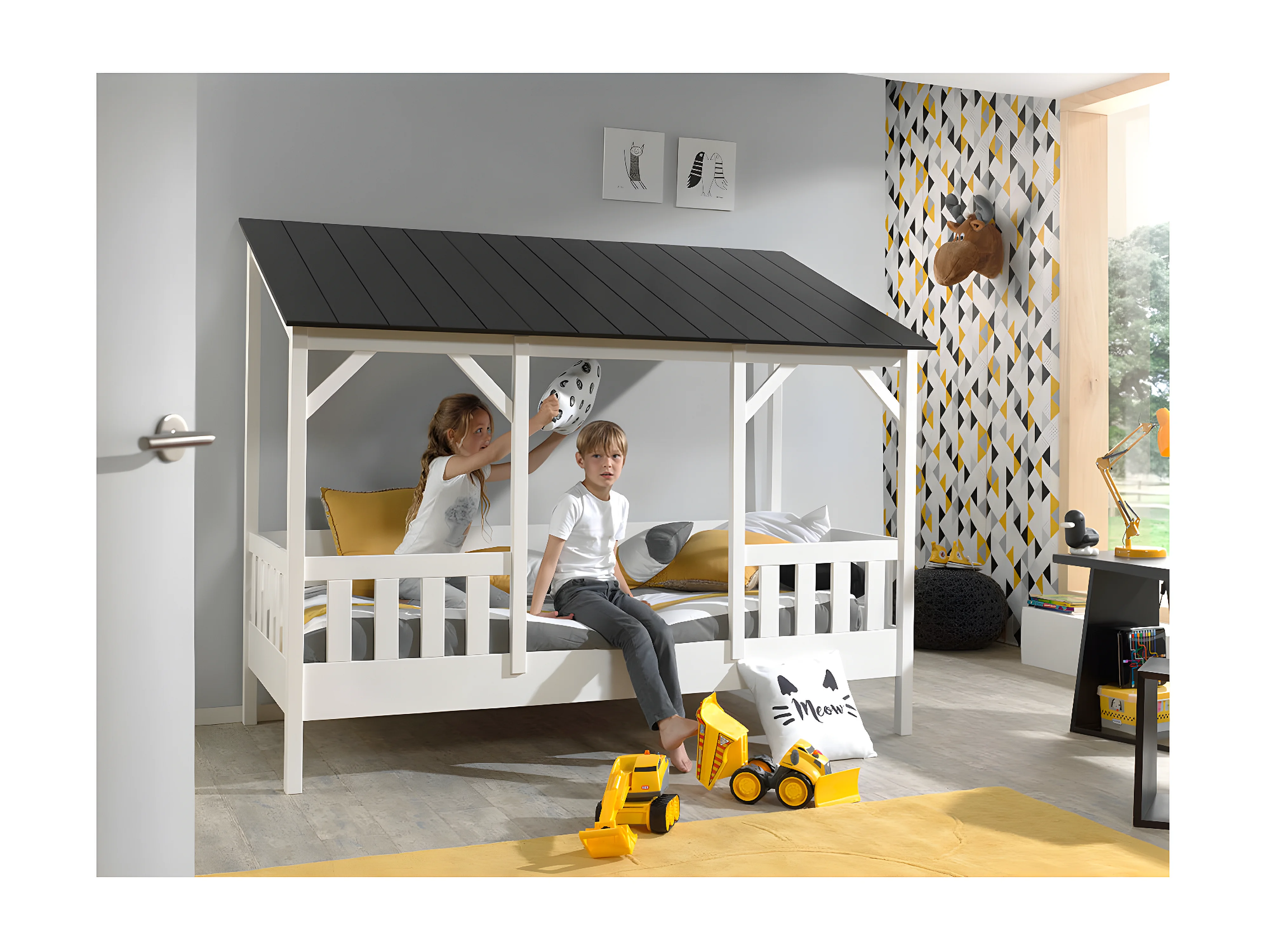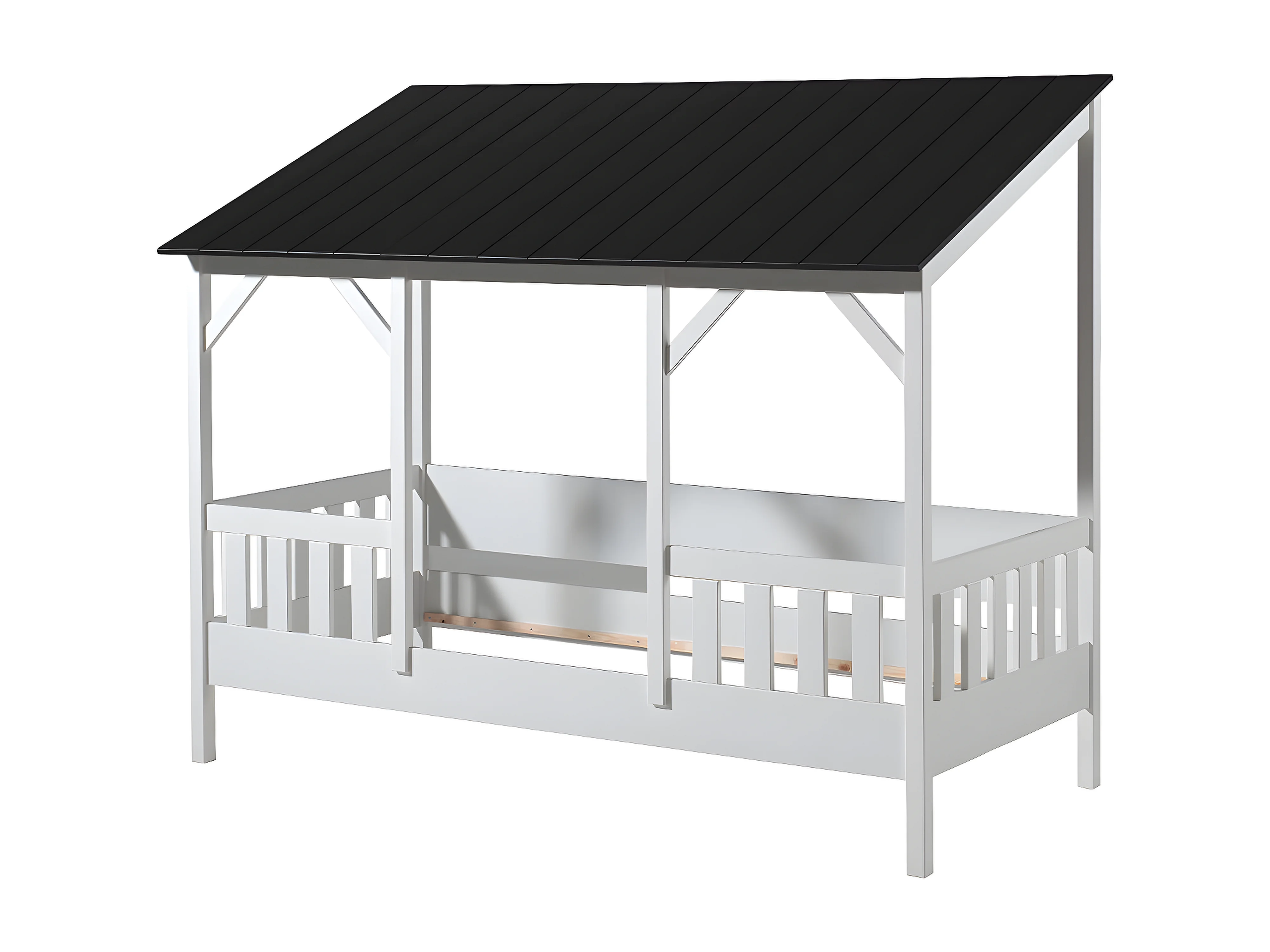 LAKA - Lit Maison 90x200cm Blanc et Noir Style Porche