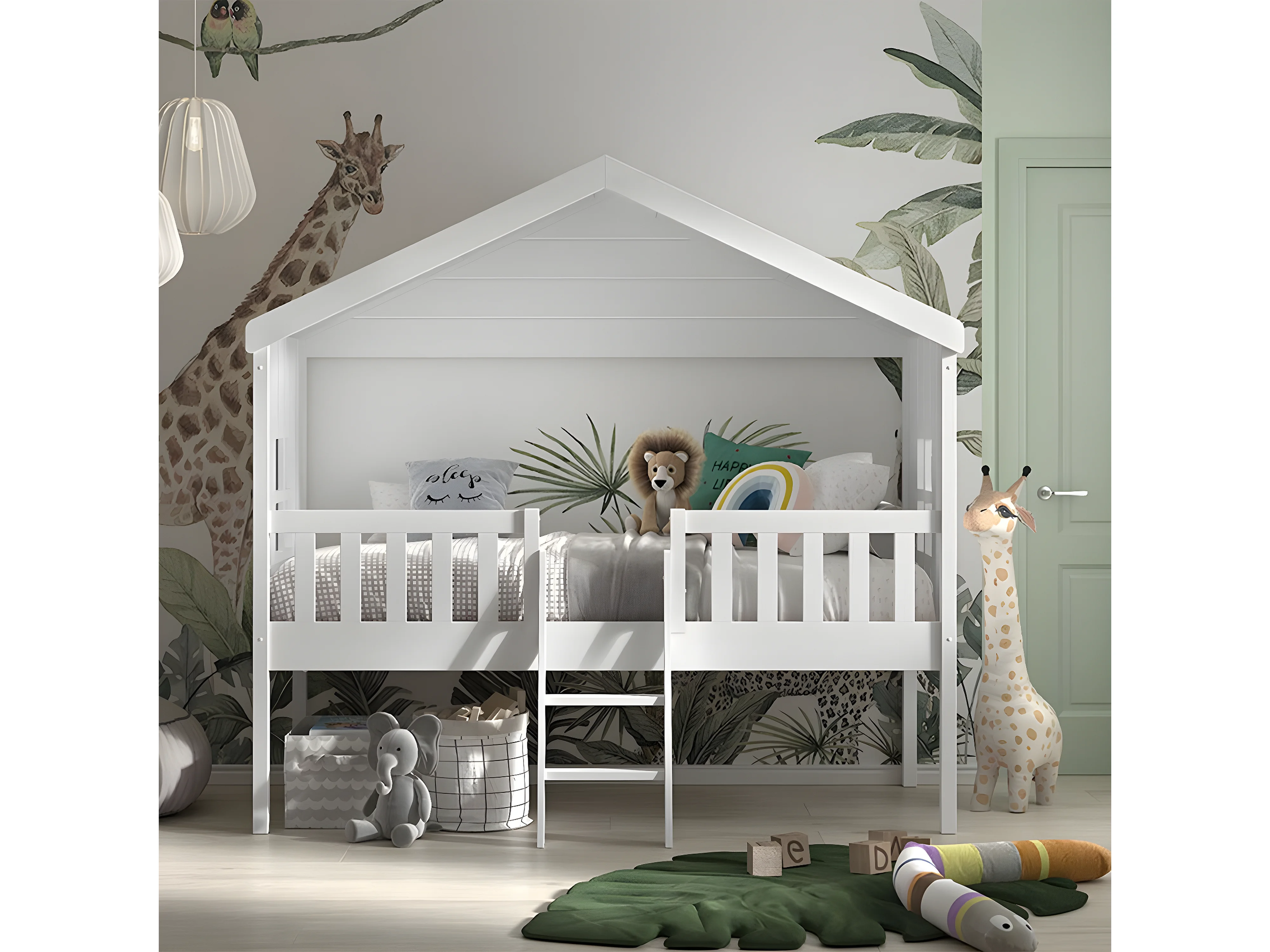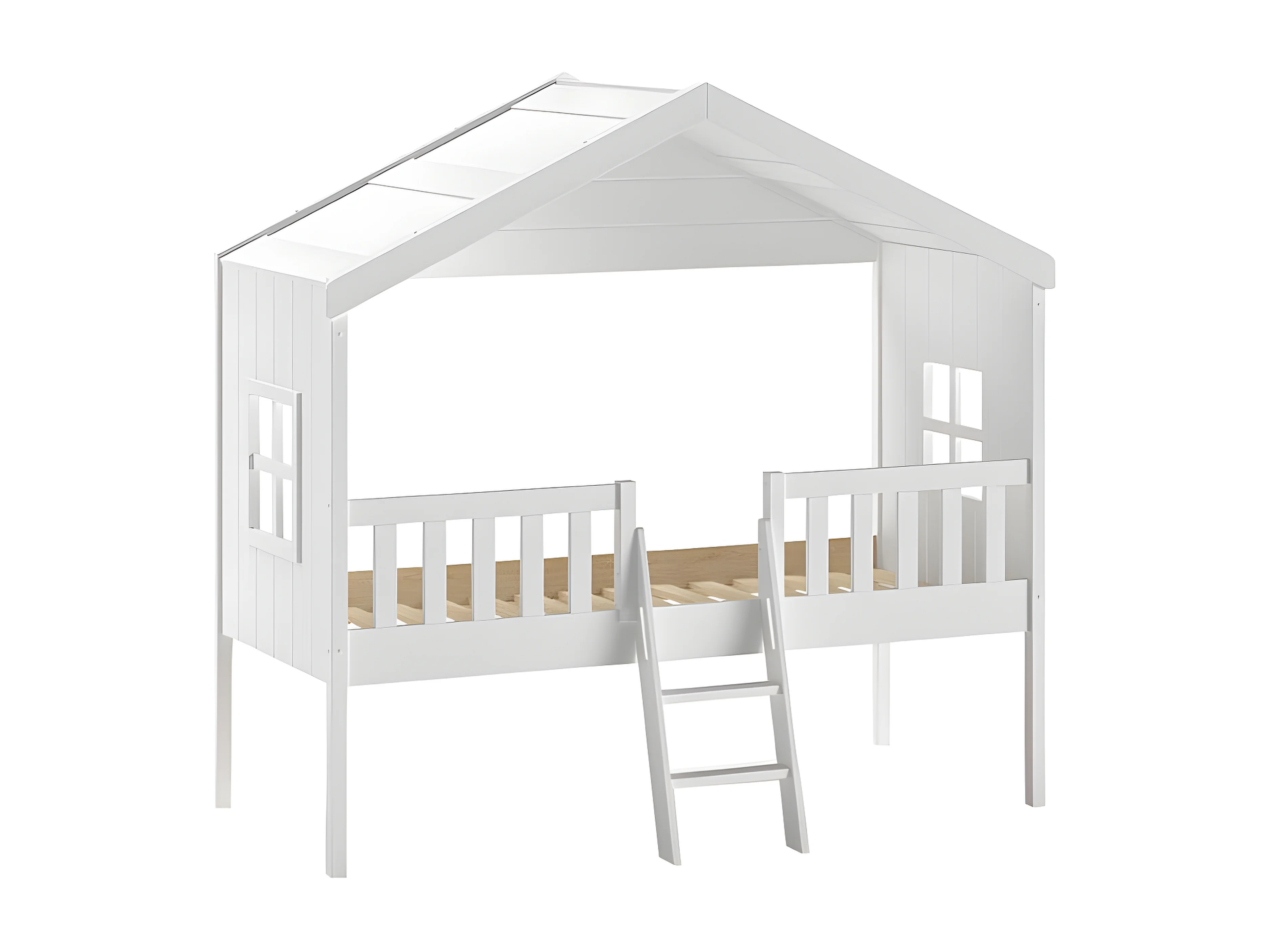 LAKA - Lit Maison Surélevé 90x200cm Blanc