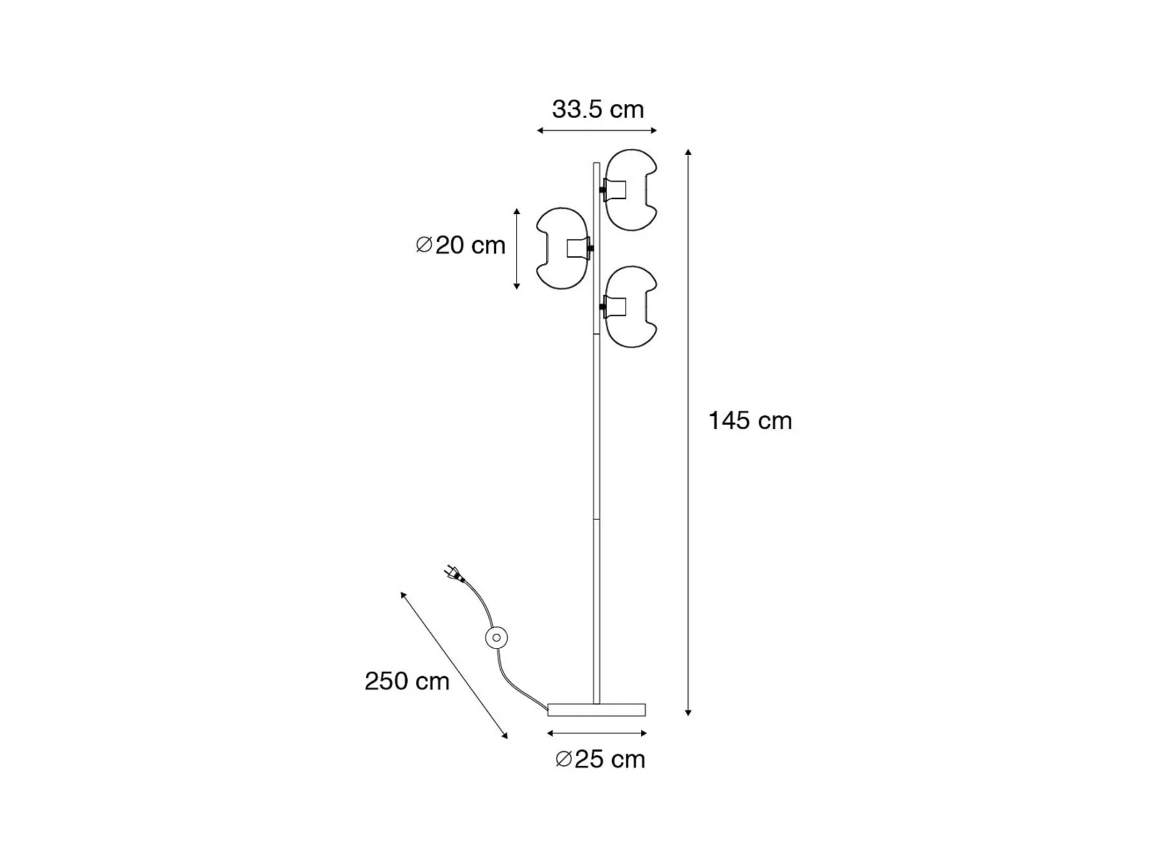 Lampadaire noir avec or avec verre fumé 3 lumières - Zuzanna