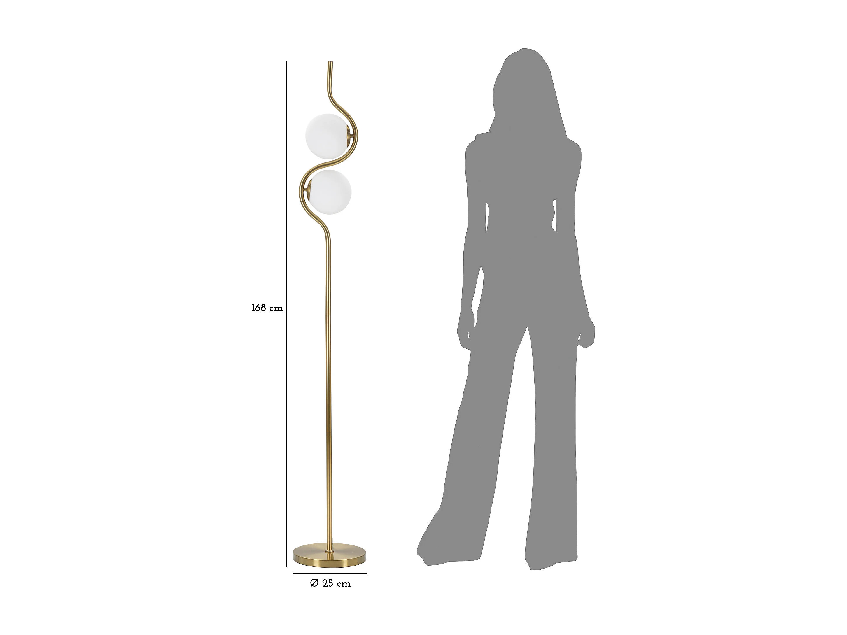 Lampadaire Design 2 Sphères "Luci" 168cm Blanc & Or