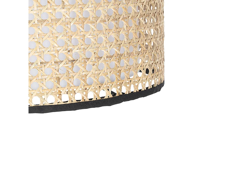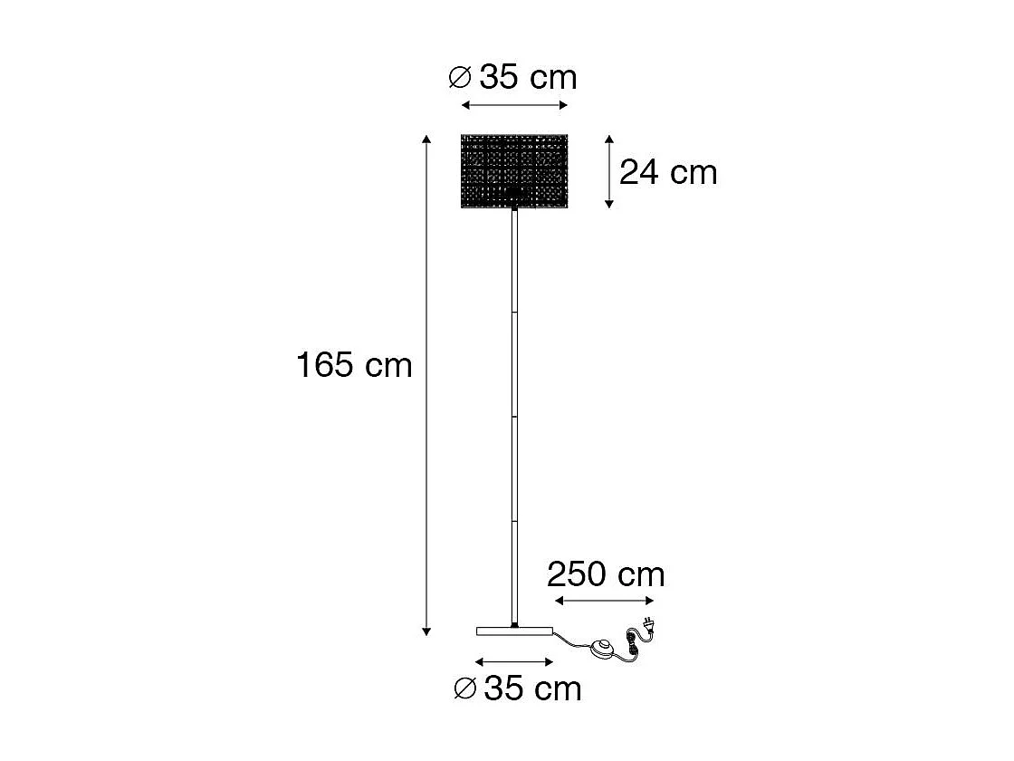 Lampadaire Country noir avec abat-jour en rotin - Kata