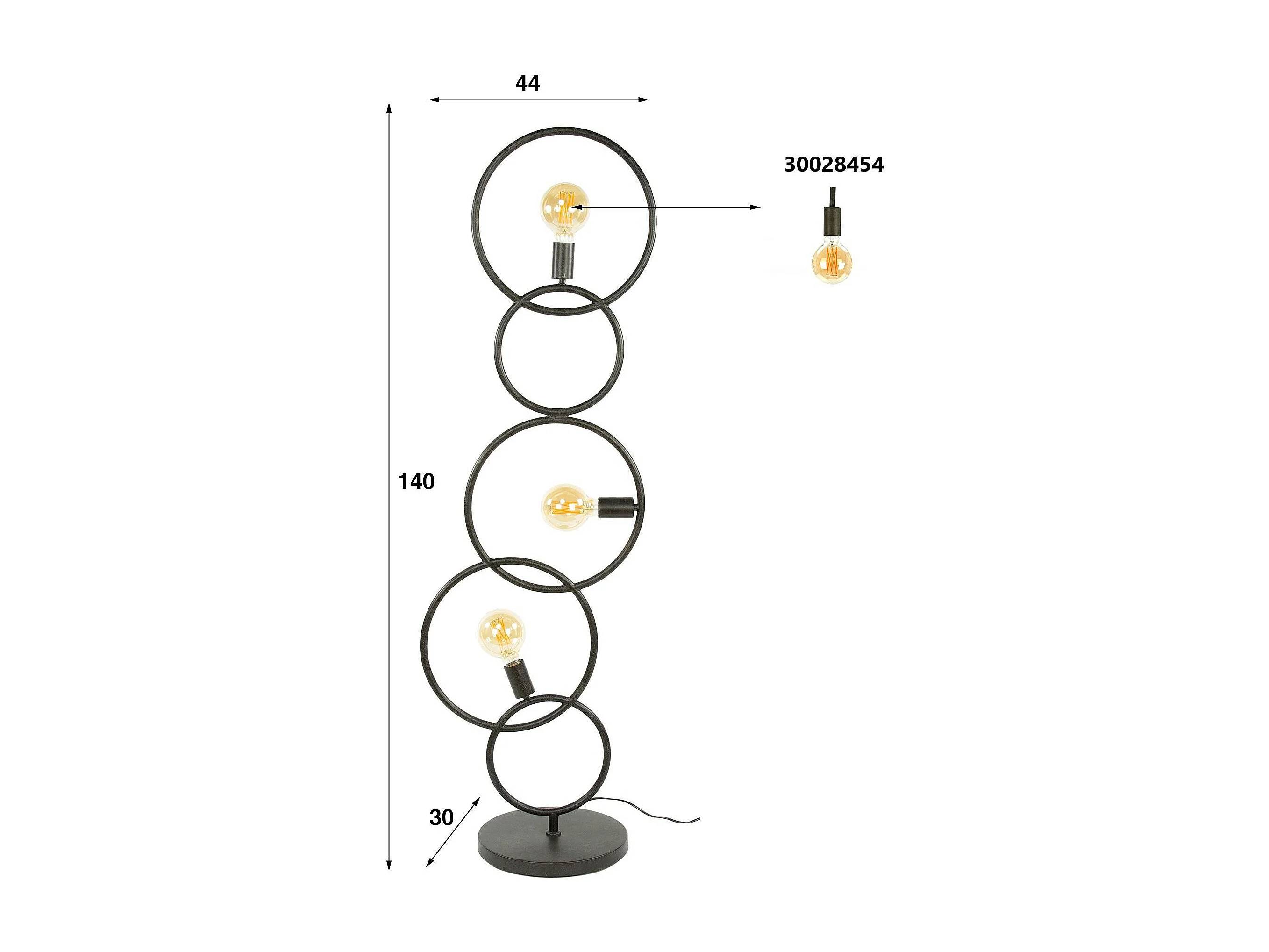 Lampadaire de salon noir – 5 anneaux design TRIBECA