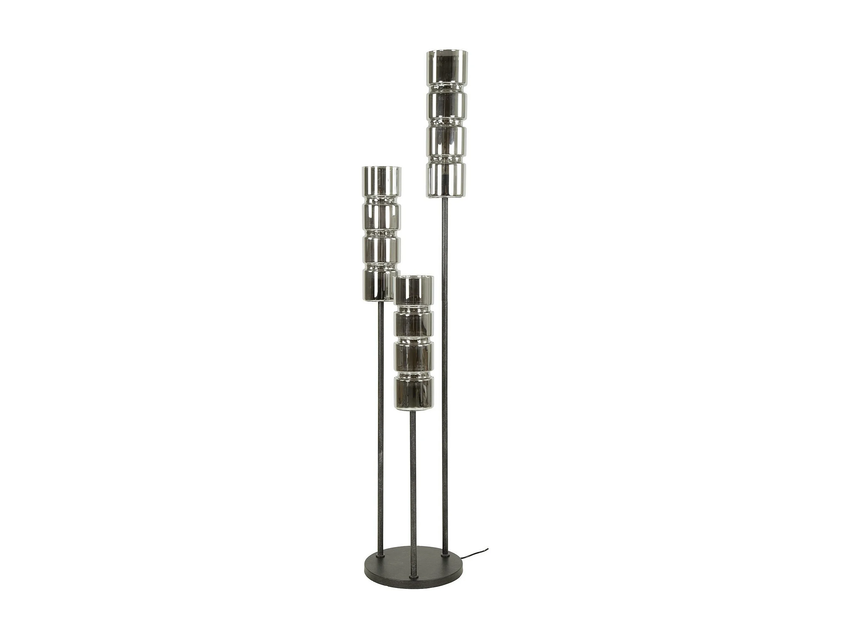 Lampadaire design en verre chromé, 3 abat-jour cylindriques RALF