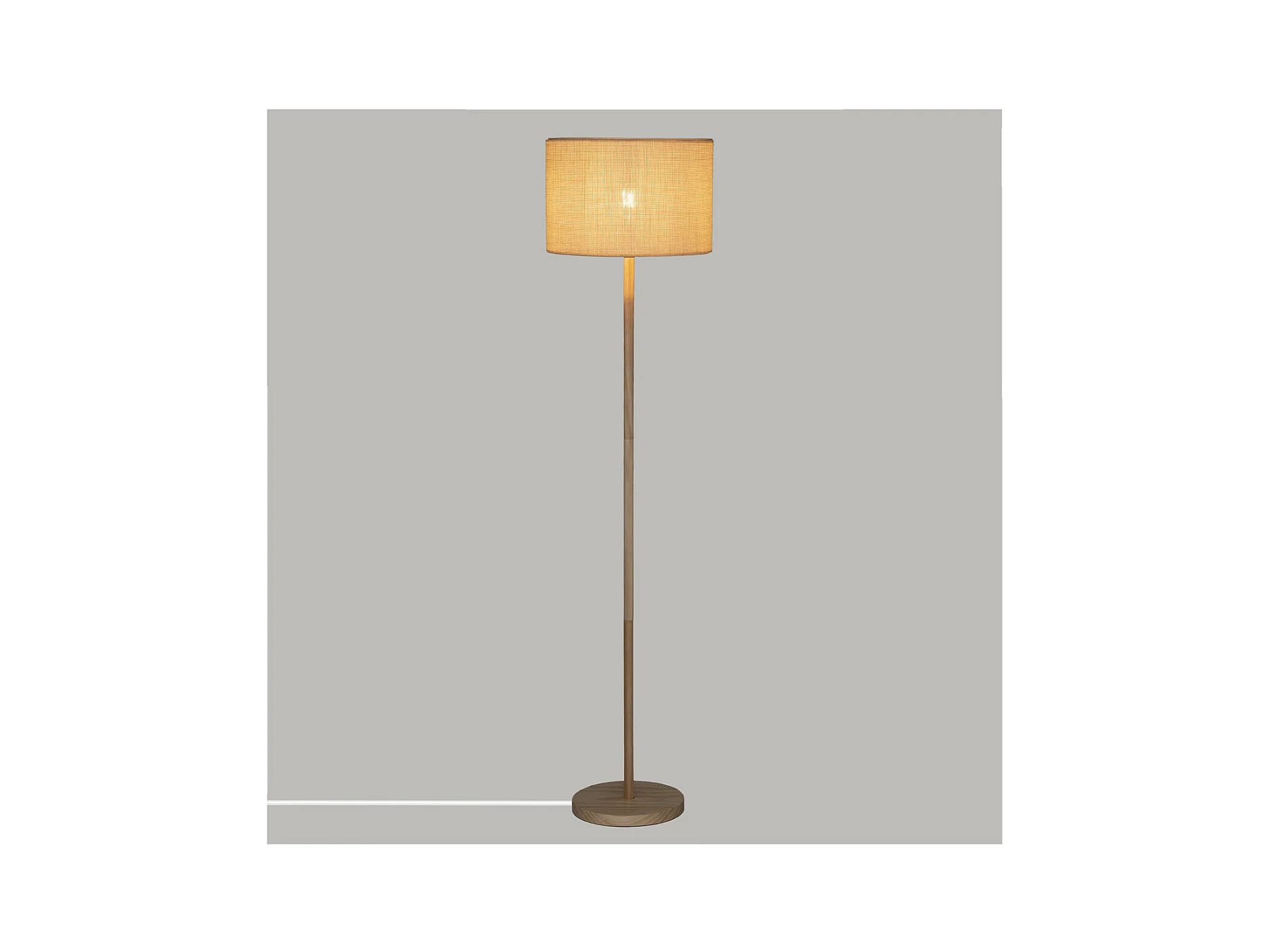 Lampadaire en Bois de Pin et Abat-jour Beige naturel tressé H 149.5 cm