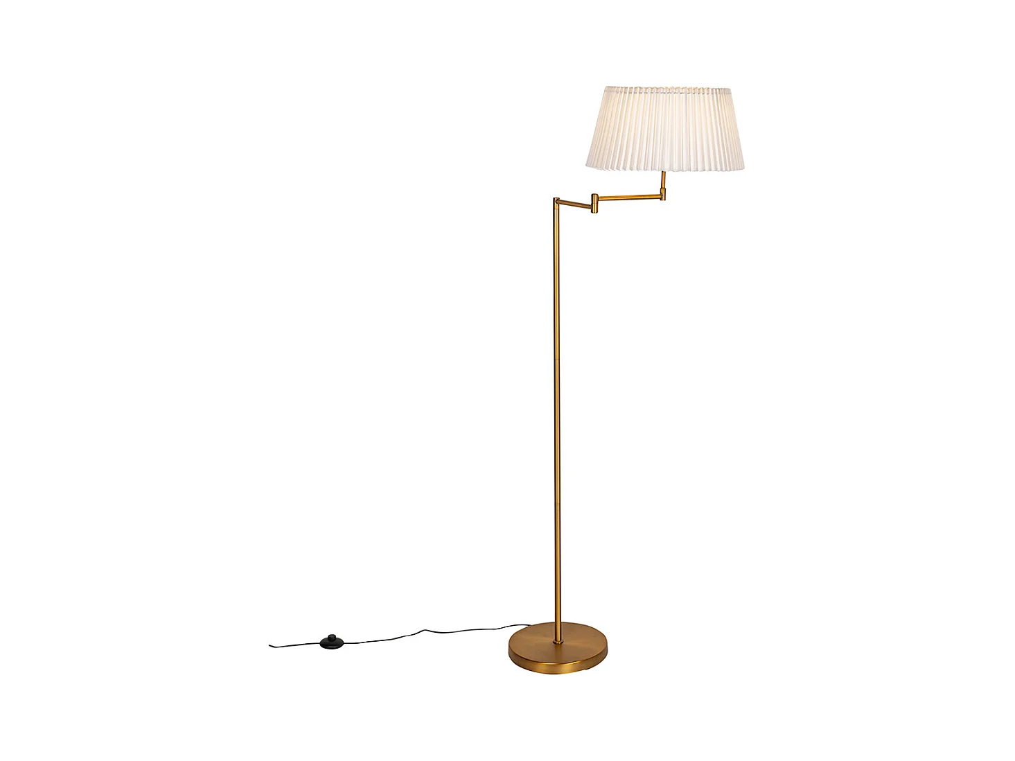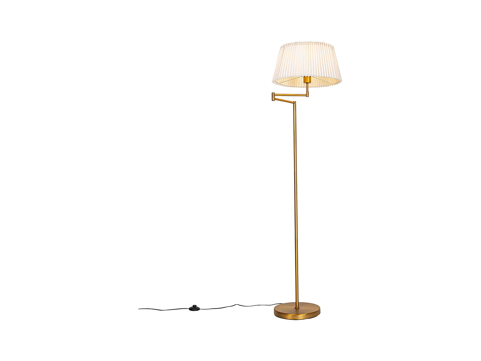 Lampadaire en bronze avec abat-jour plissé blanc et bras réglable - Ladas Deluxe
