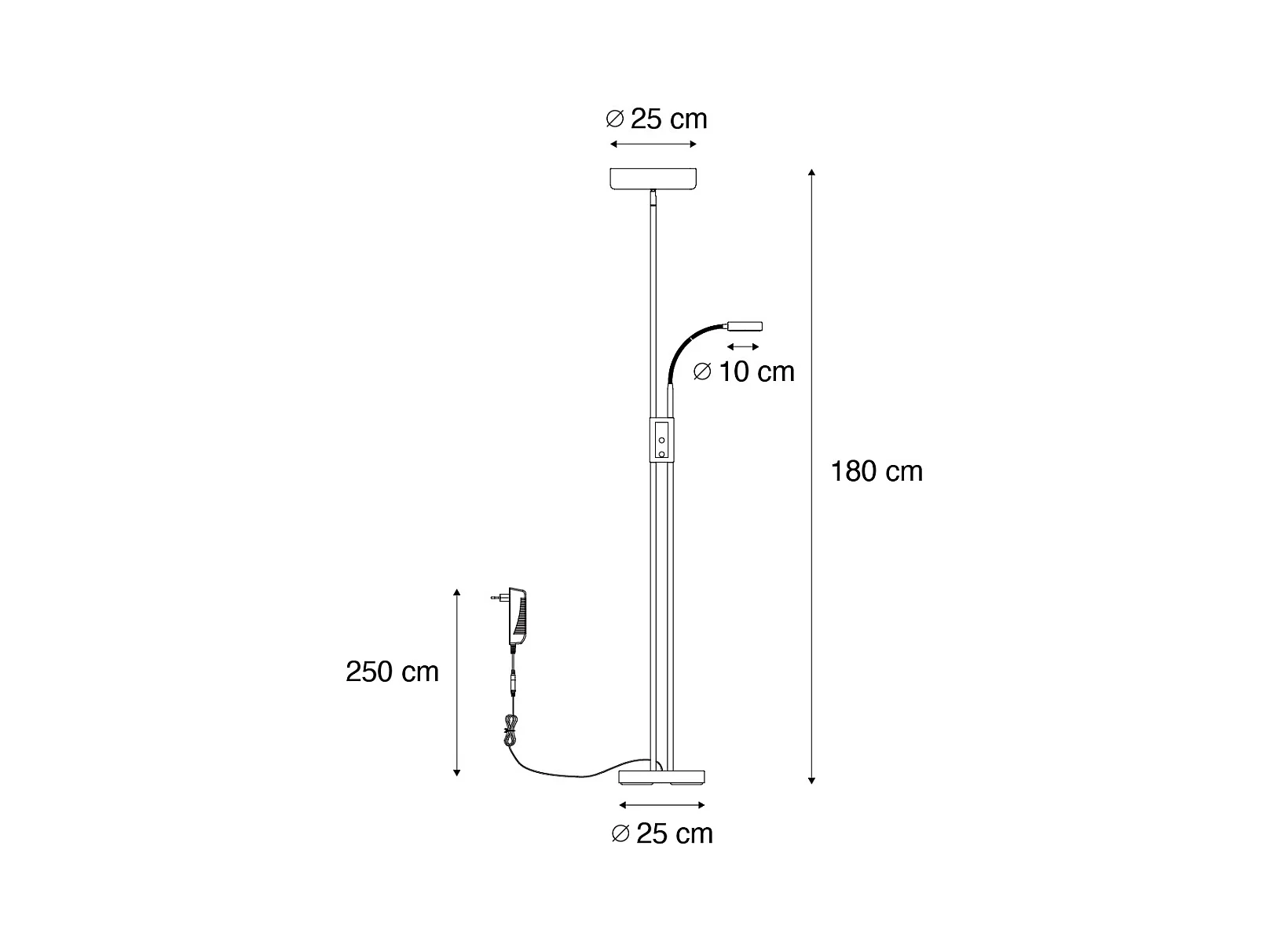 Lampadaire en bronze avec LED et variateur avec lampe de lecture - Kelso