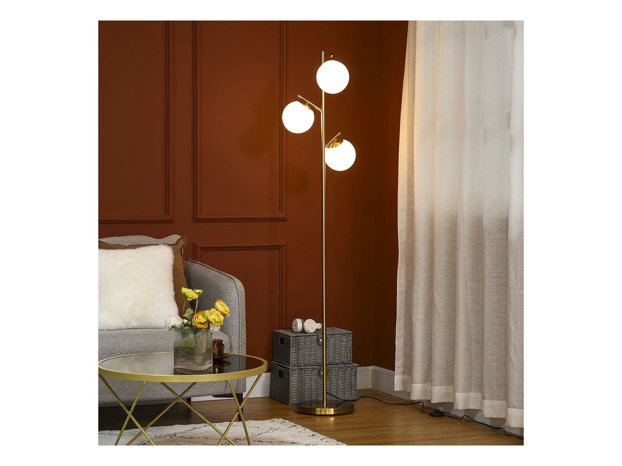 Lampadaire globe design néo-rétro 3 ampoules max. 40 W 169H cm métal doré