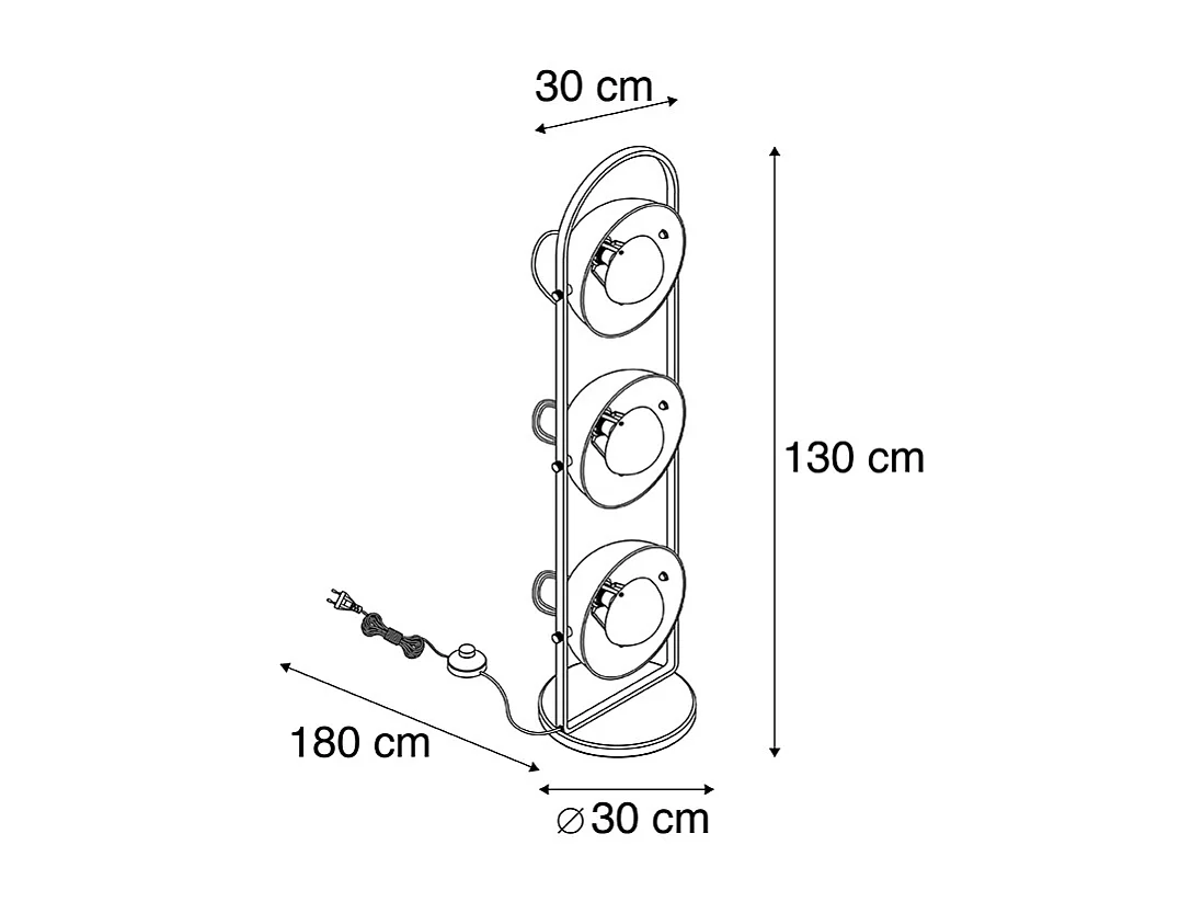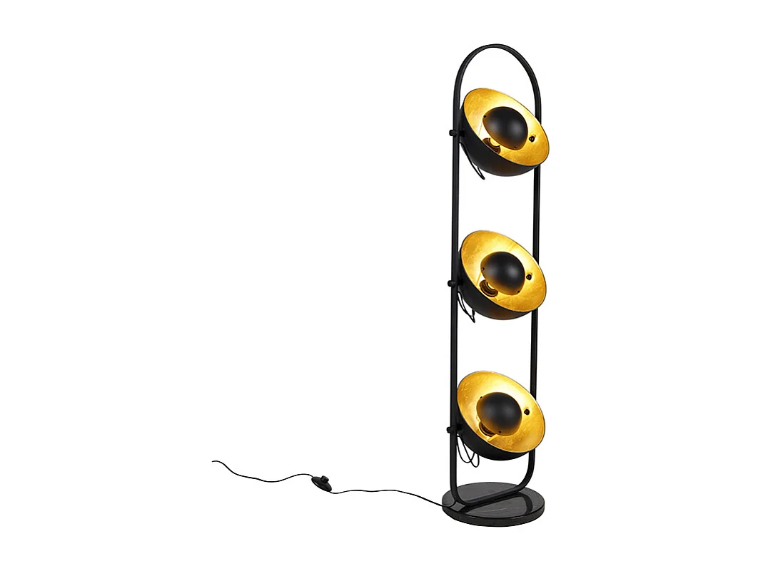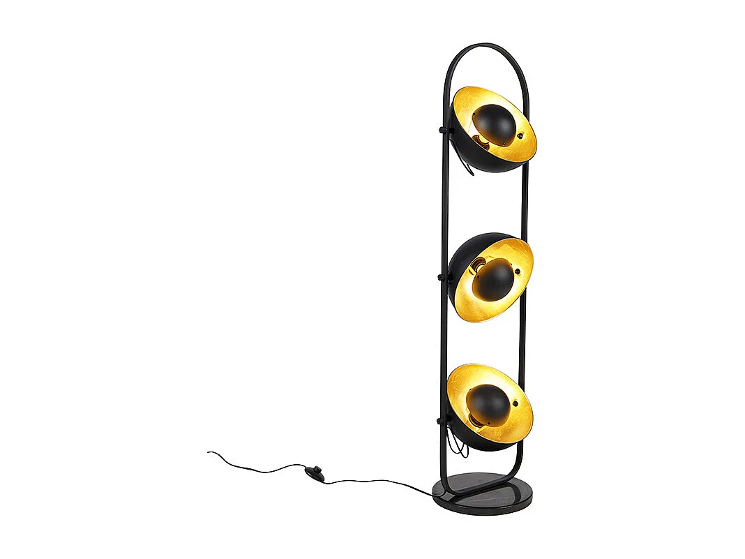 Lampadaire industriel noir à 3 lumières dorées - Emilienne Novo