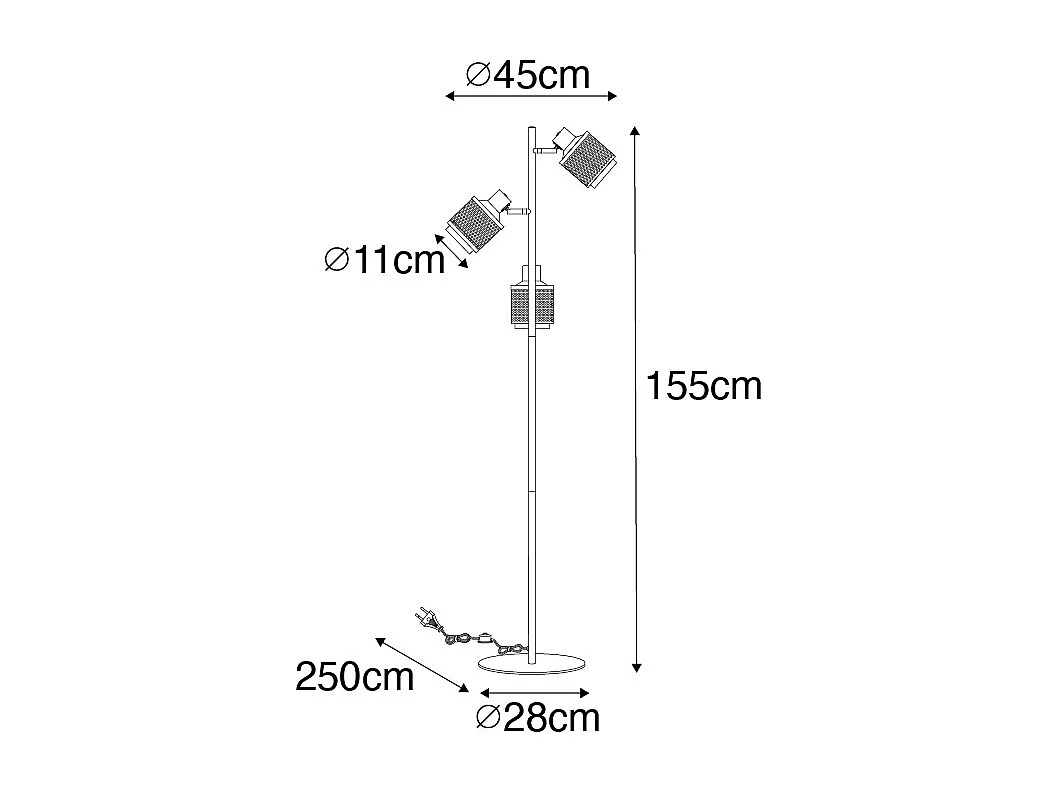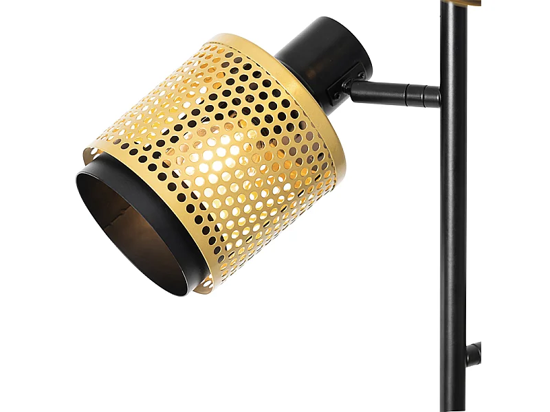 Lampadaire design noir avec or 3 lumières orientable - Mesh