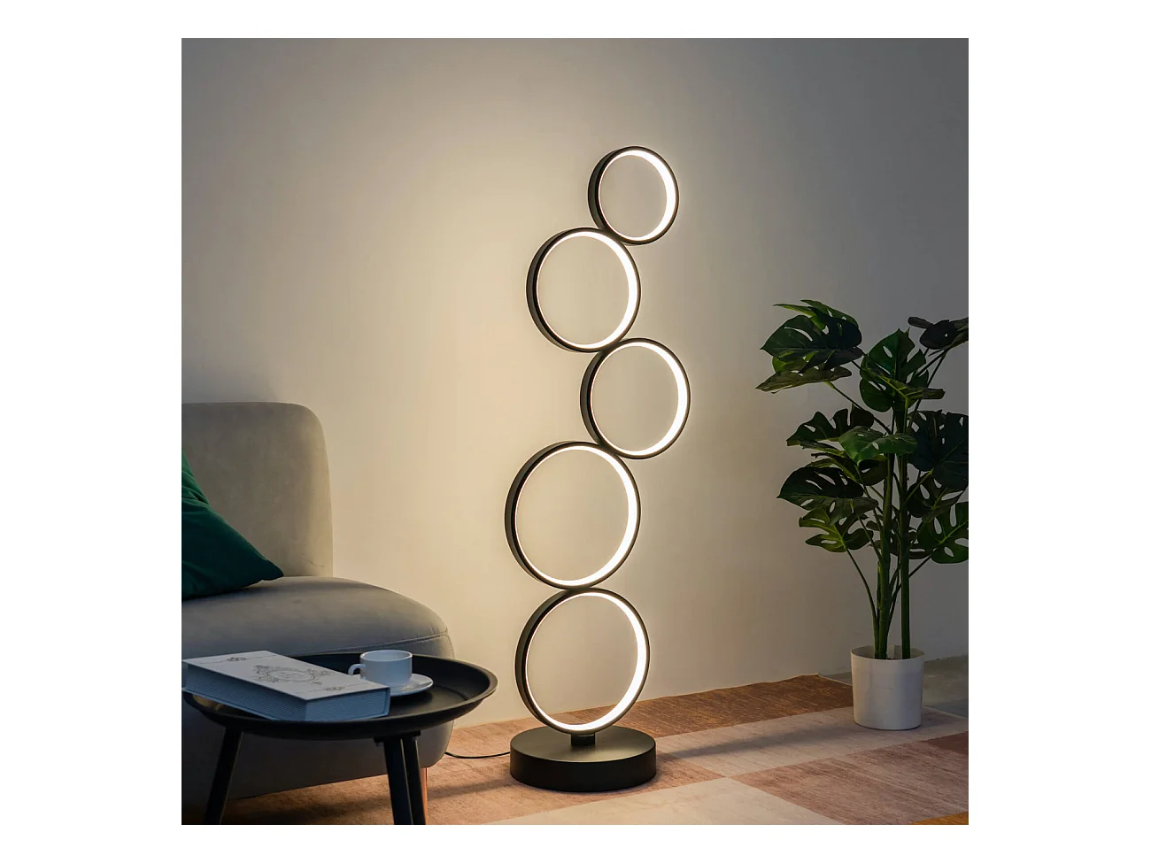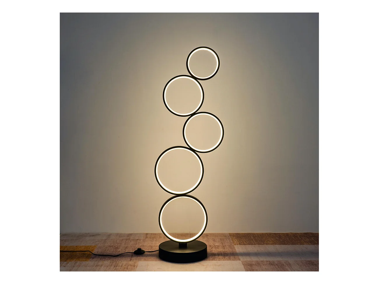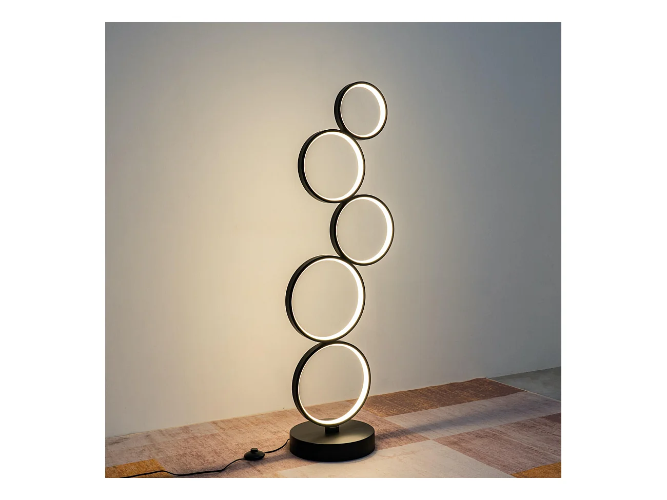 Lampadaire LED cercles superposés en métal noir - Newton