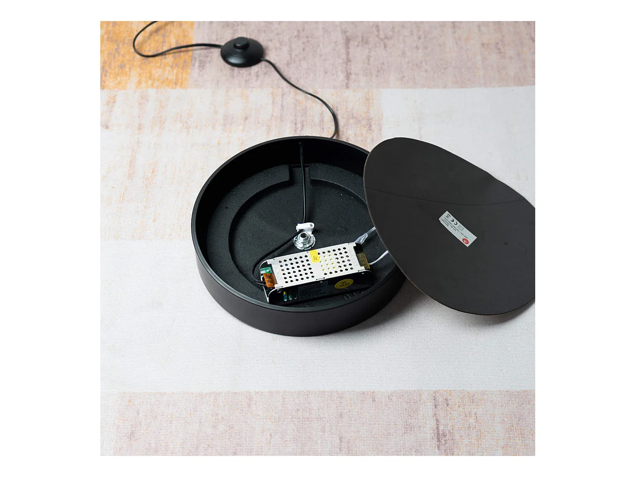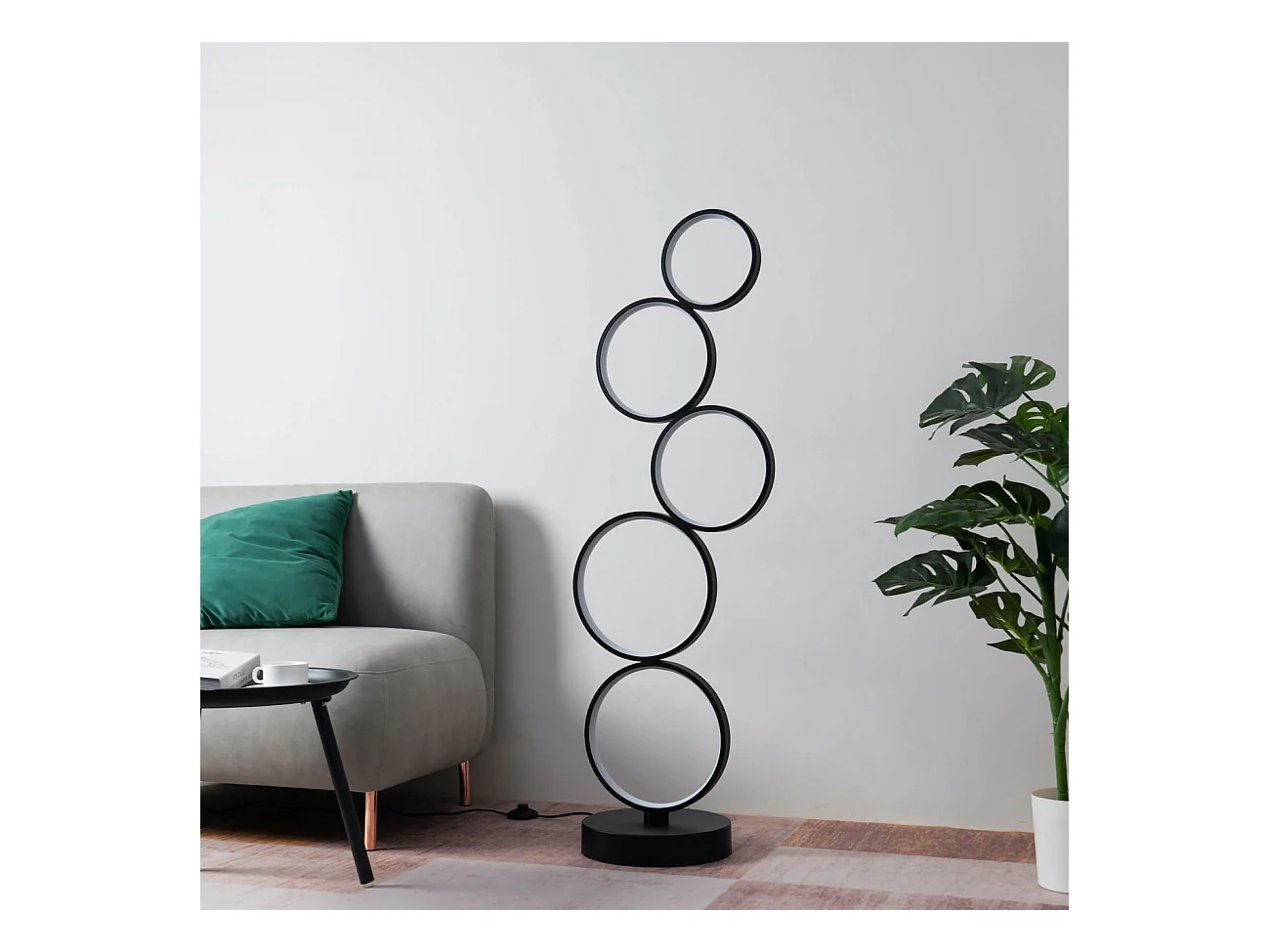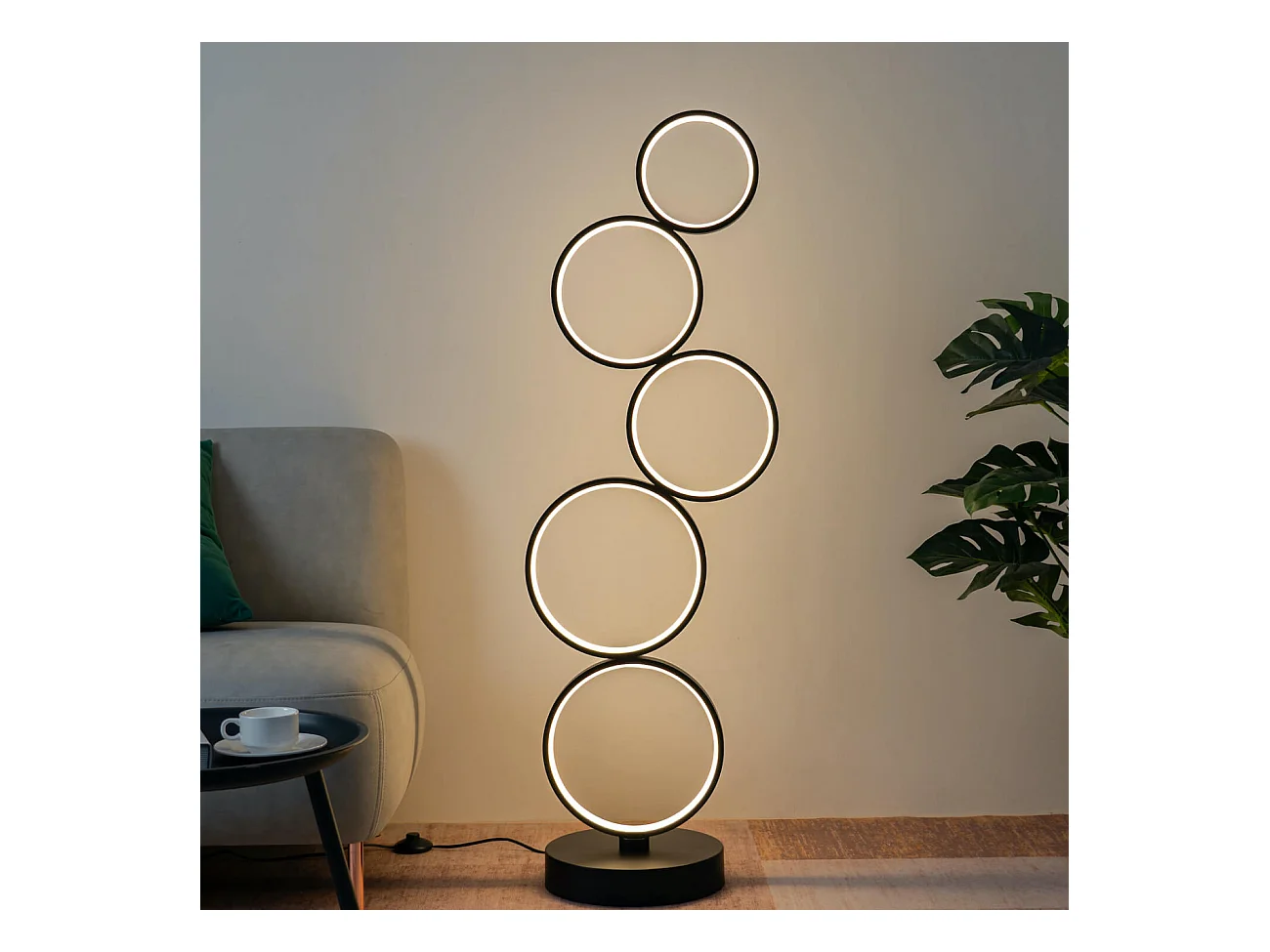 Lampadaire LED cercles superposés en métal noir - Newton