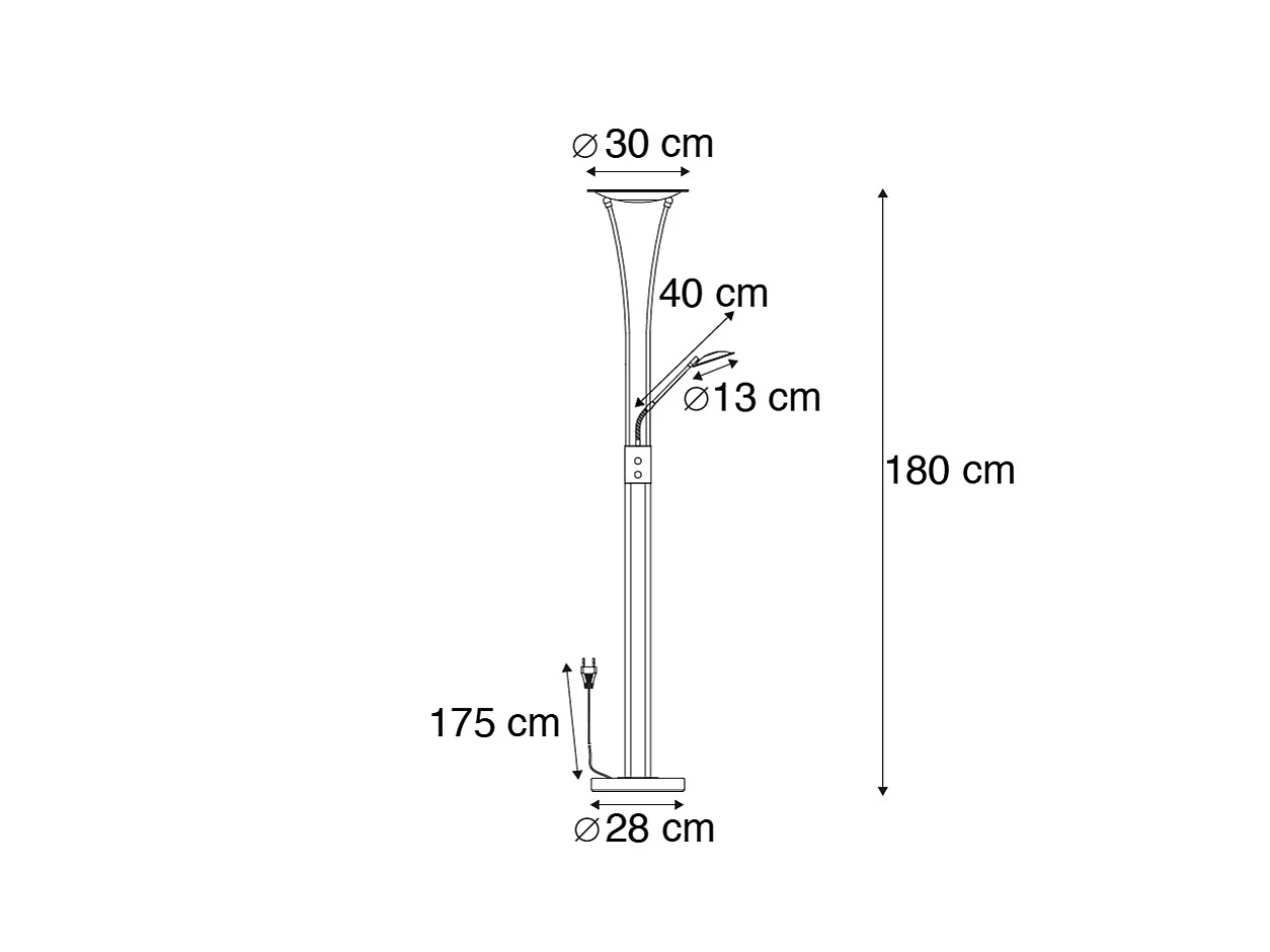 Lampadaire en acier avec lampe de lecture avec LED et variateur - Diva