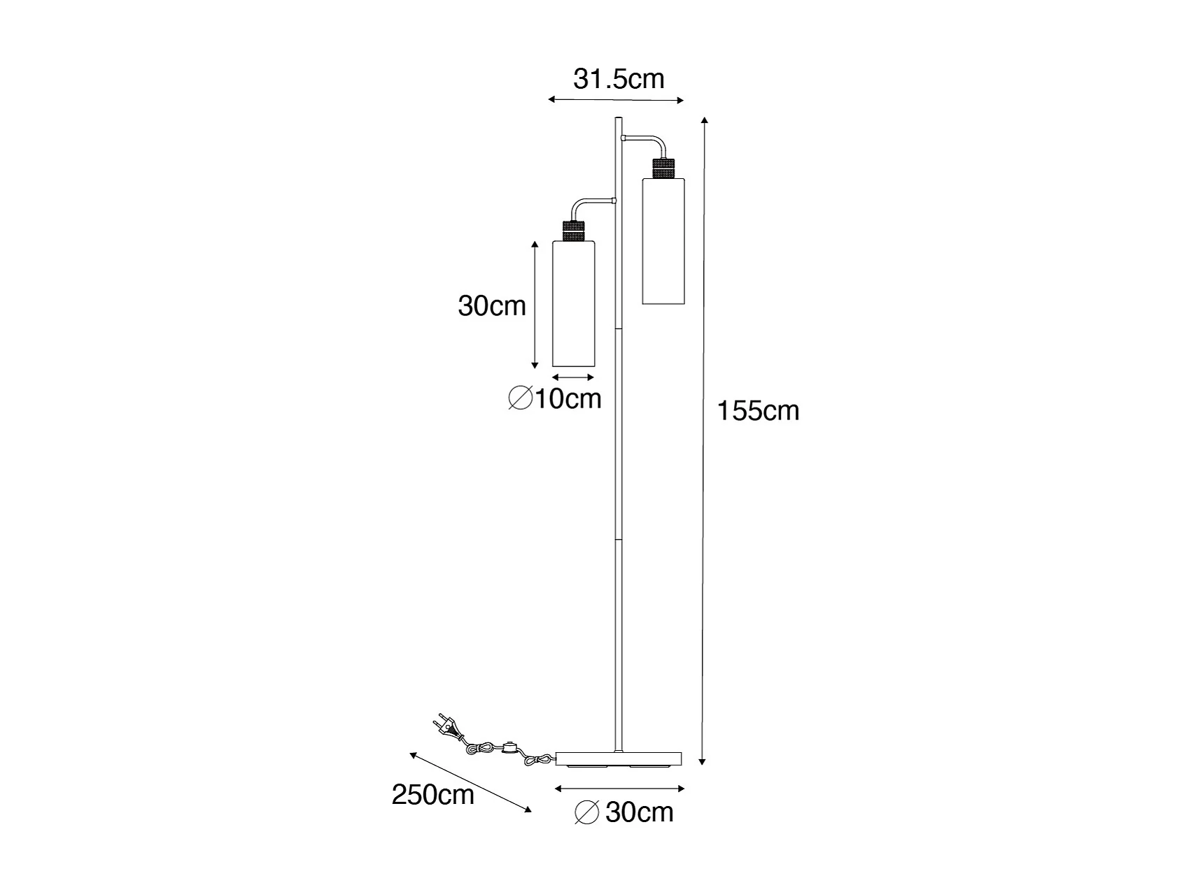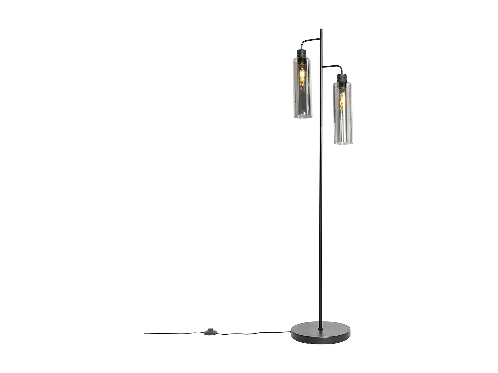 Lampadaire moderne noir avec verre fumé 2 lumières - Stavelot