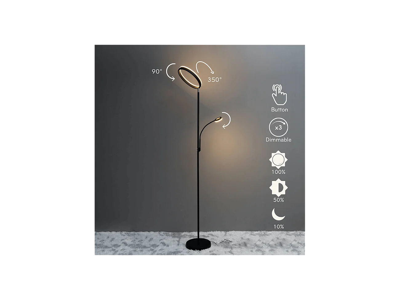 Lampadaire noir design épuré tête orientable dimmable - Kalena