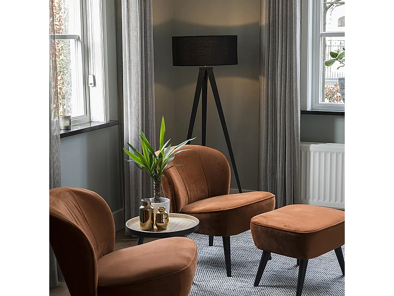 Lampadaire moderne en laiton avec abat-jour noir - Ilse