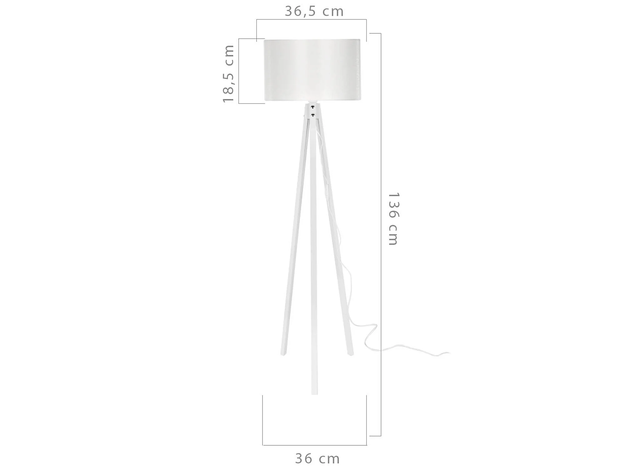 Lampadaire trépied Luca 145cm Tissu Gris et Bois Blanc