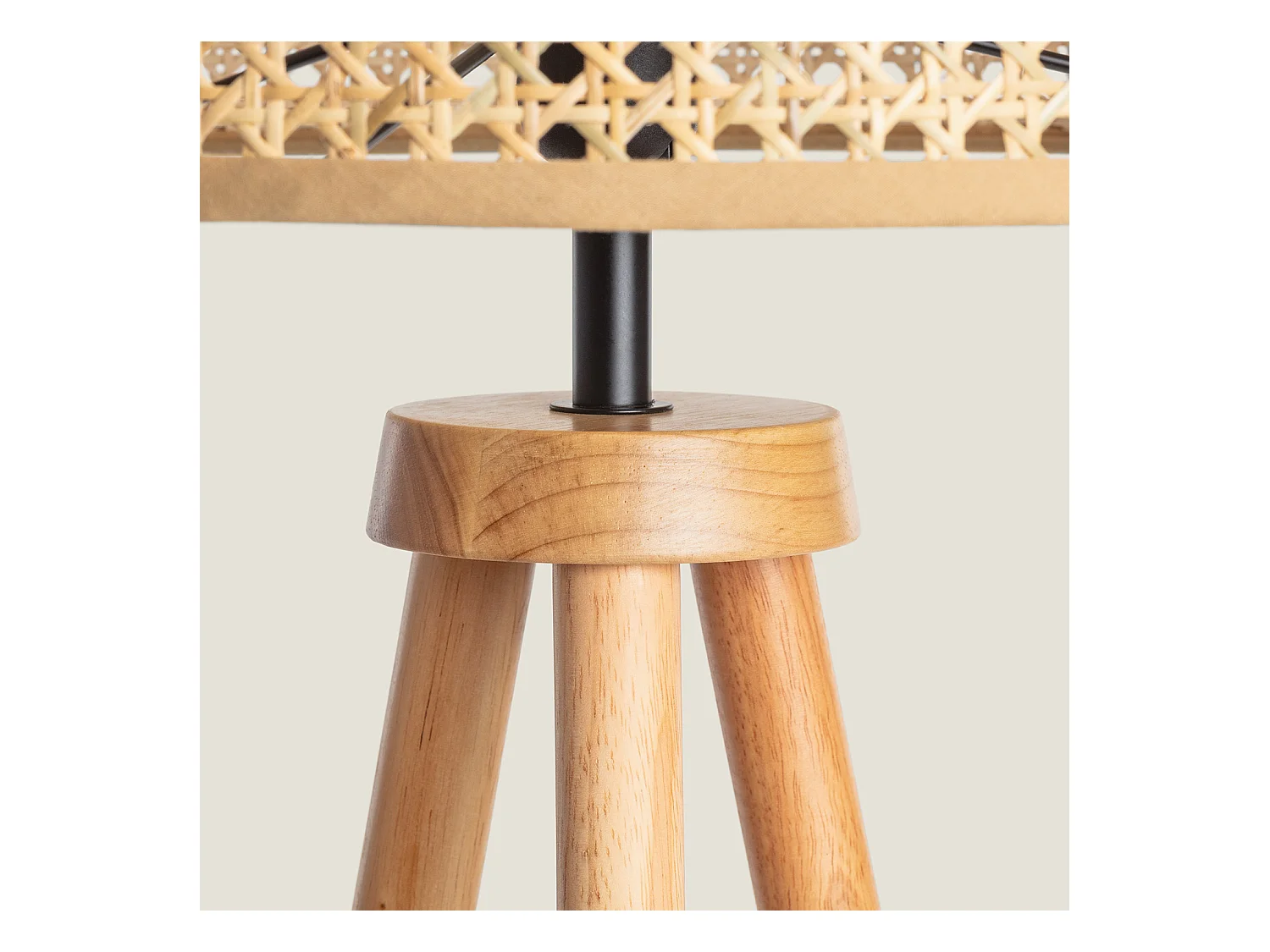 Lampadaire trépied effet bois avec abat-jour cannage KILIS