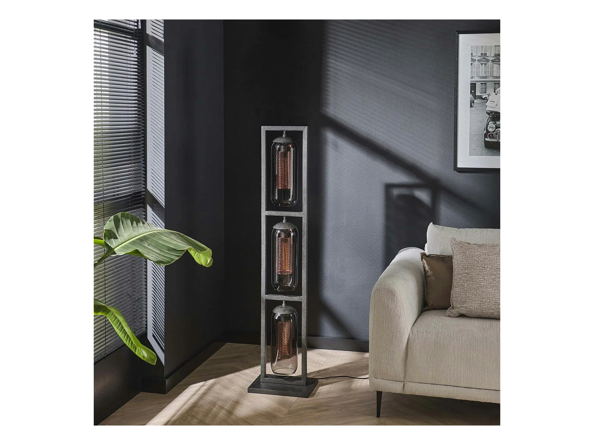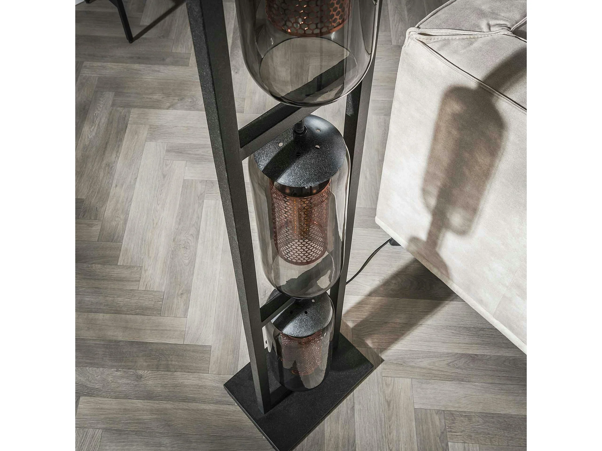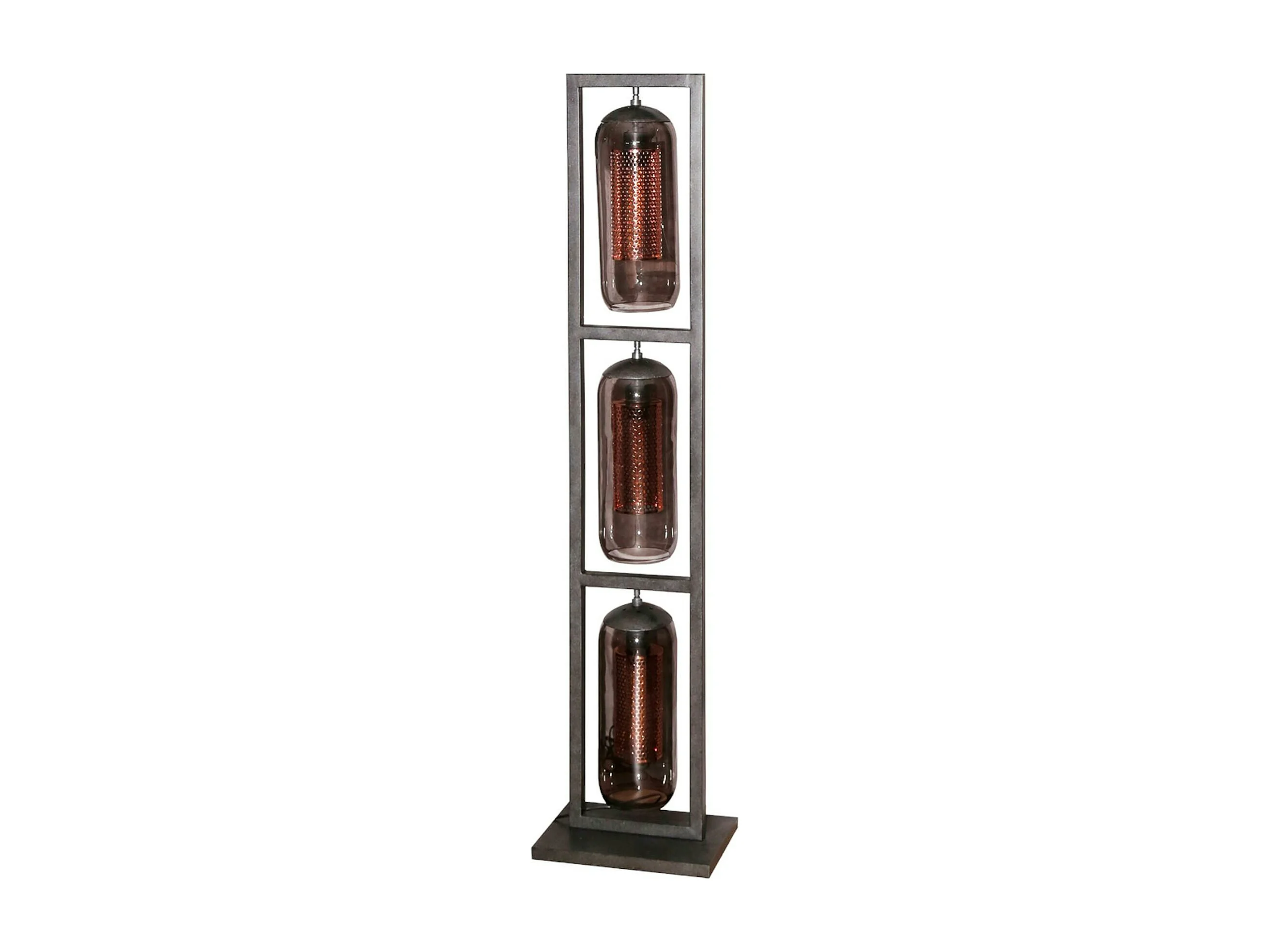 Lampadaire salon 3 lampes verre fumé et métal cuivré NOVA