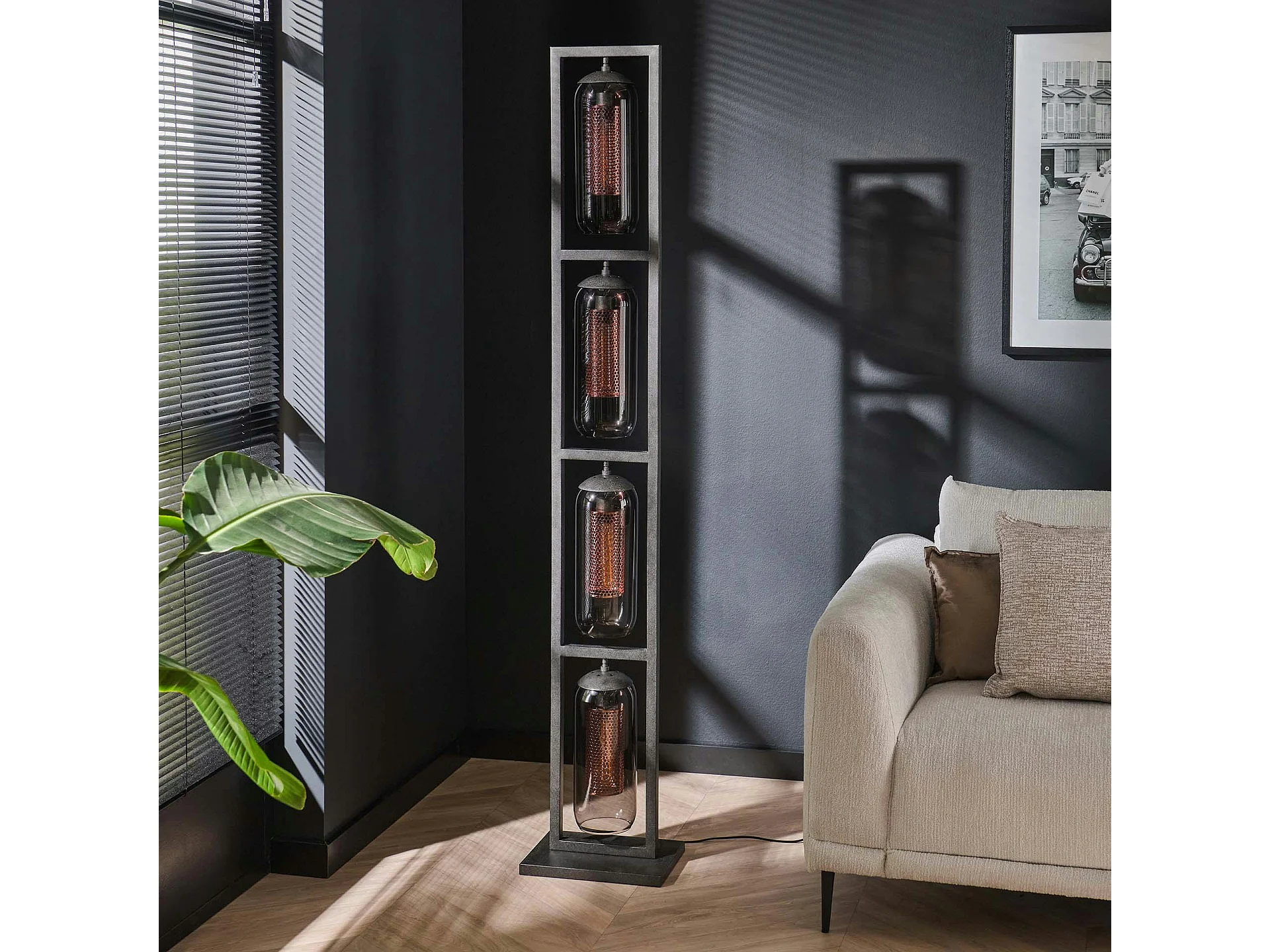 Lampadaire salon 4 lampes verre fumé et métal cuivré NOVA