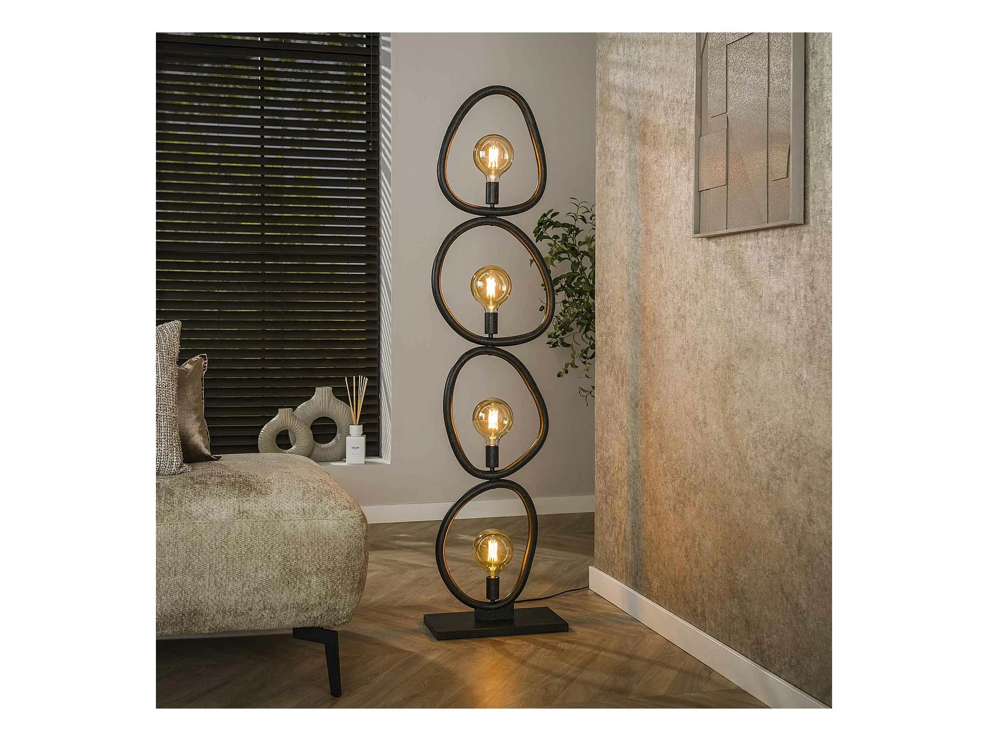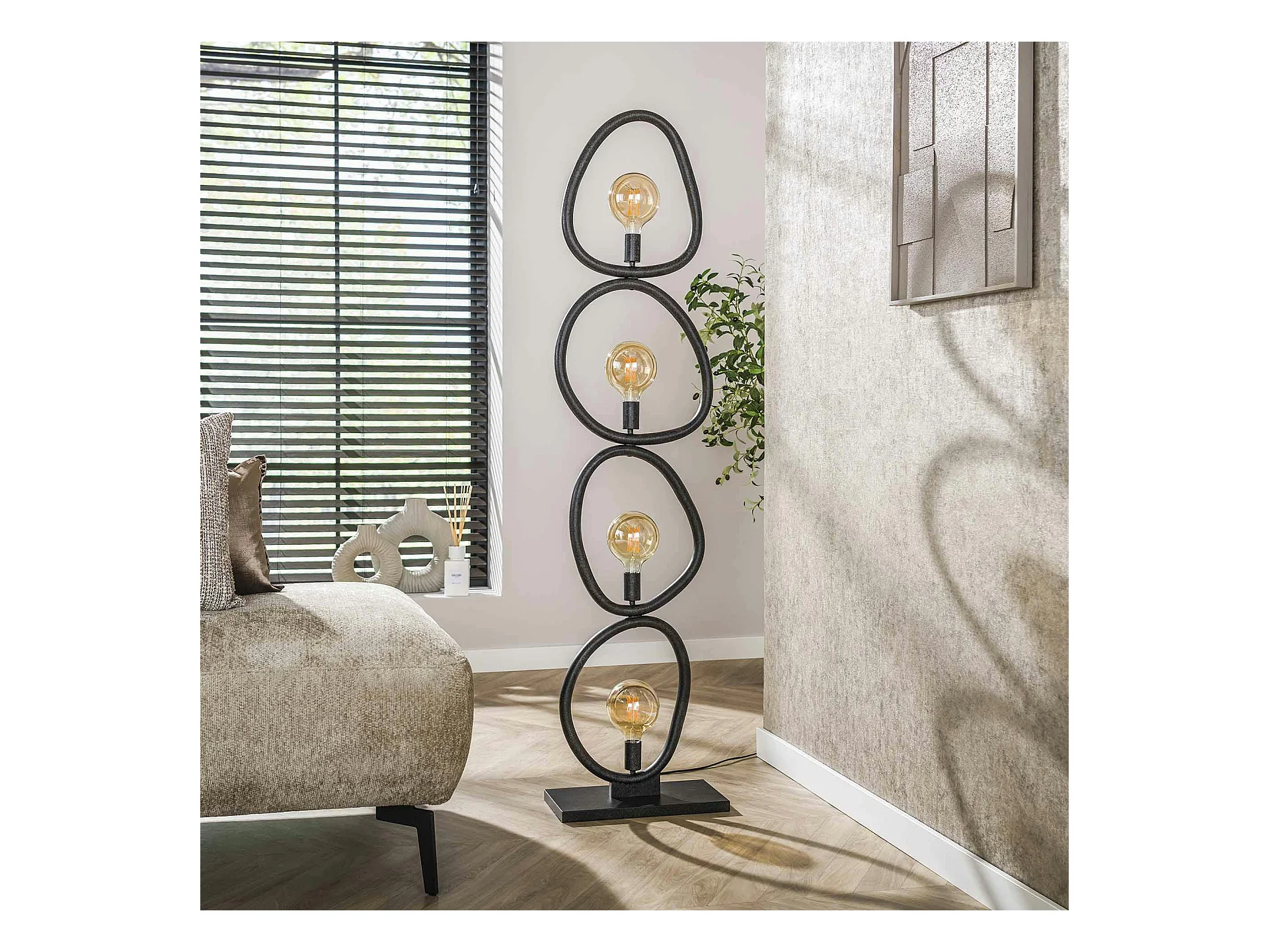 Lampadaire salon noir – forme galet, 4 ampoules TRIBECA