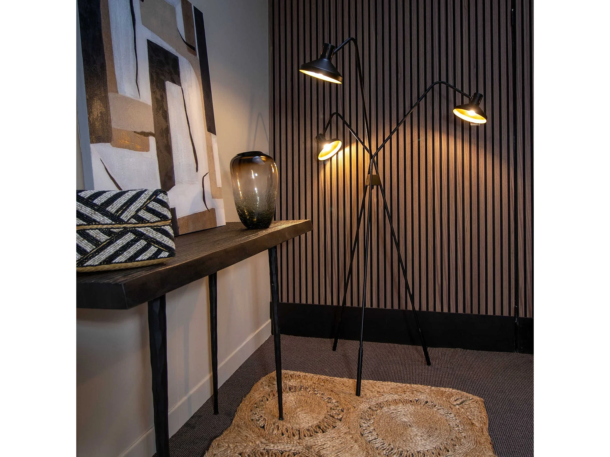 Now's Home - Lampadaire Trepied En Metal Noir Et Dore 41x41xh158cm Snake