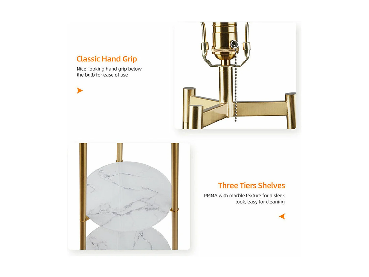 Lampadaire tripode marbre scandinave - LED à couleur changeante - H159cm - Lampadaire sur pied - doré