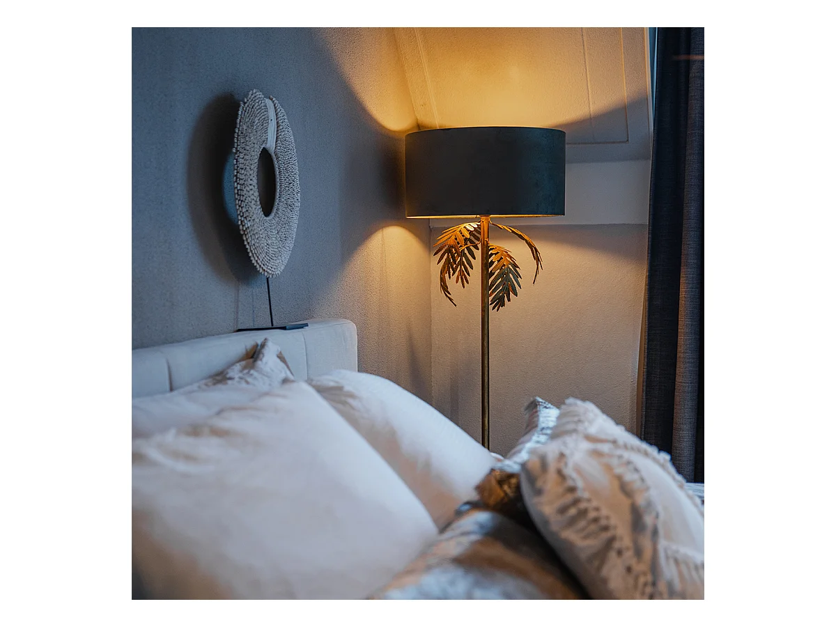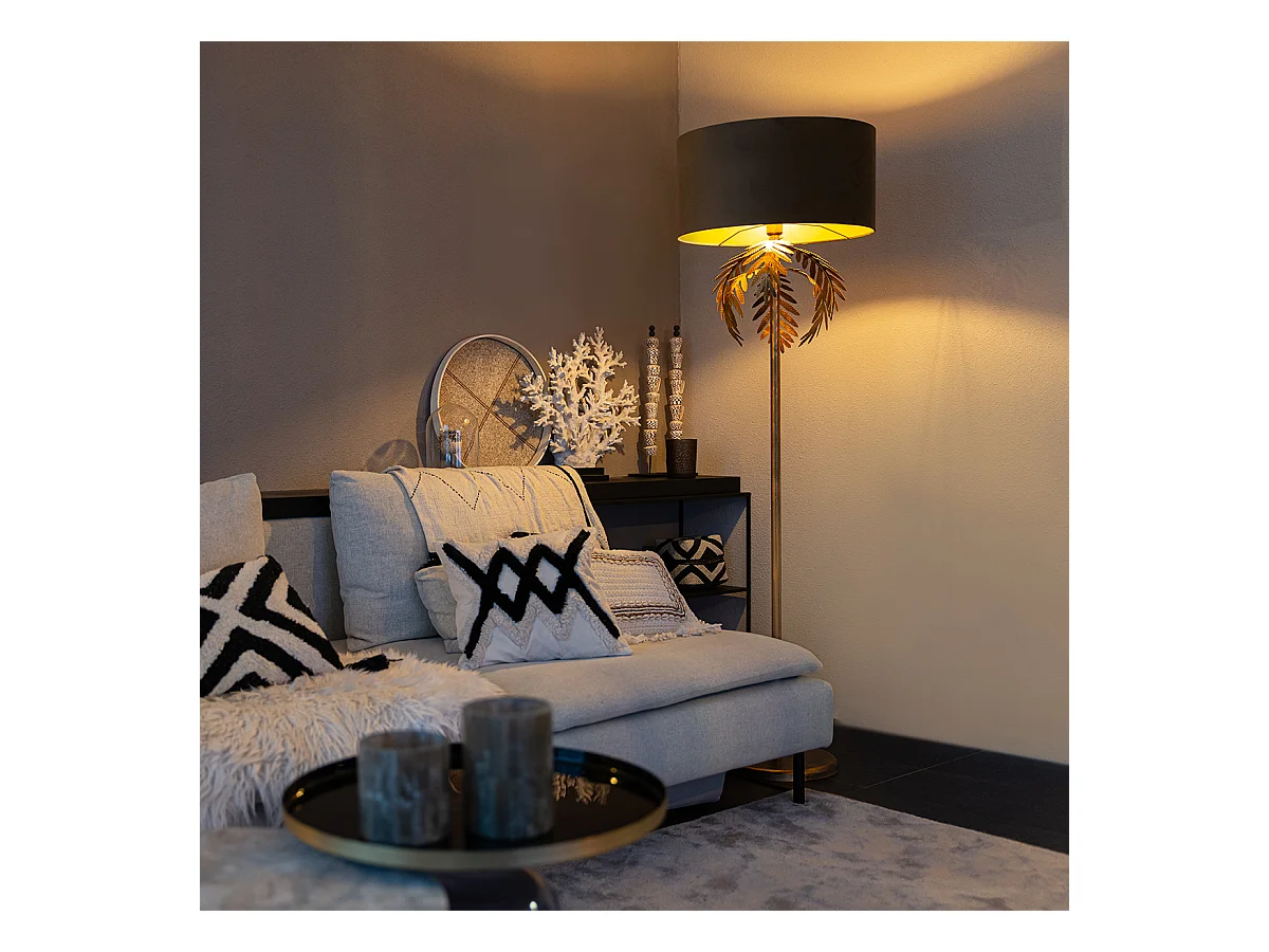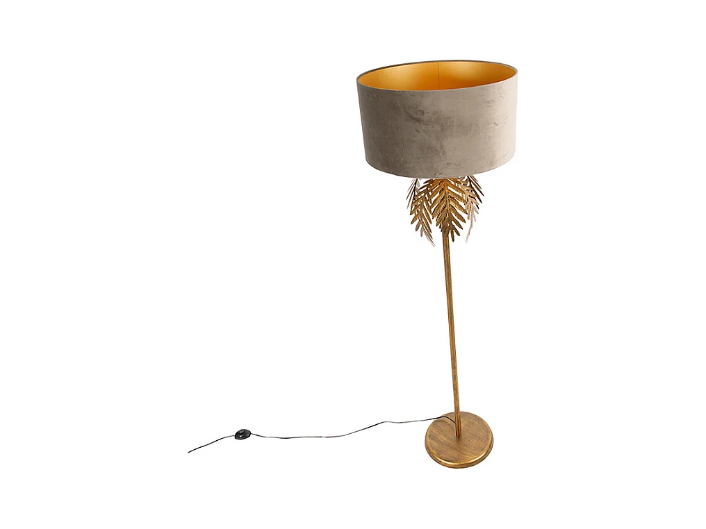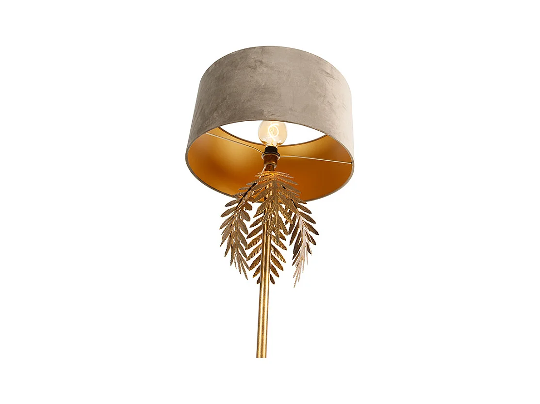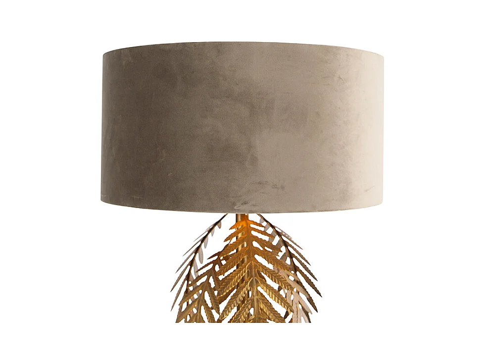 Lampadaire vintage or avec abat-jour en velours taupe 50 cm - Botanica