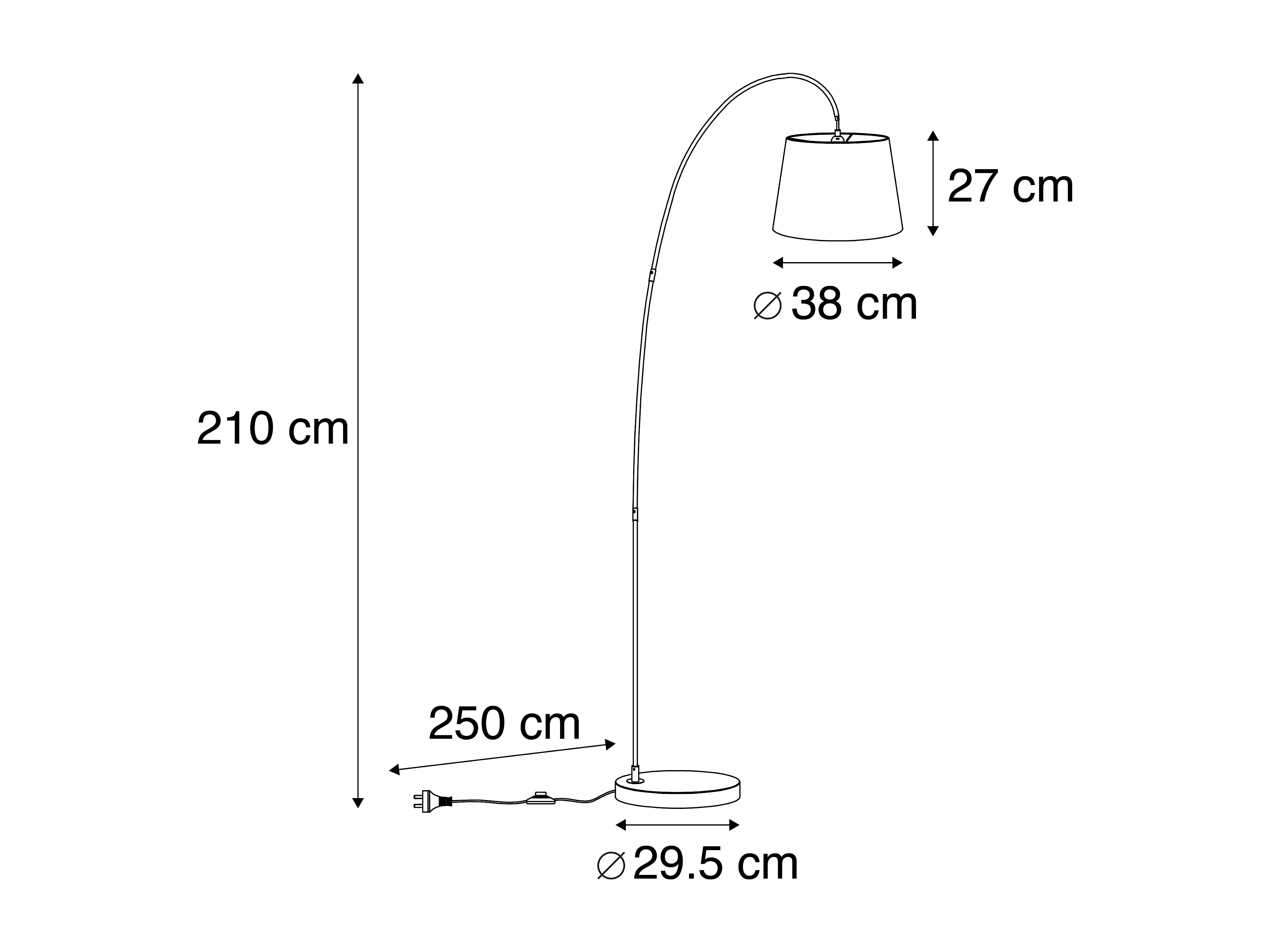 Lampe à arc moderne noire avec abat-jour en tissu noir - Arc Basic