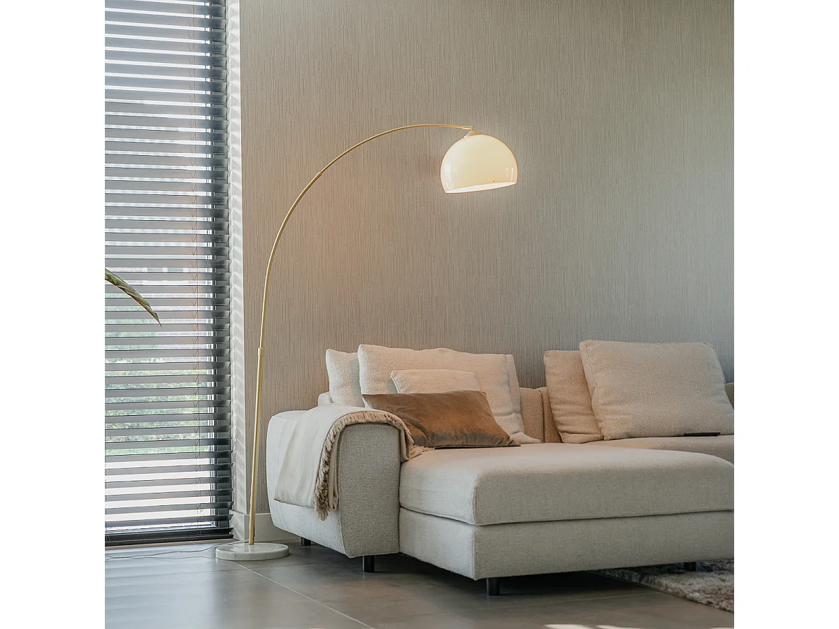 Lampe à arc moderne en laiton avec abat-jour blanc - Arc Basic