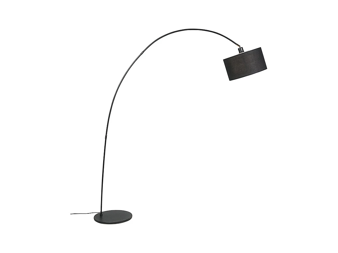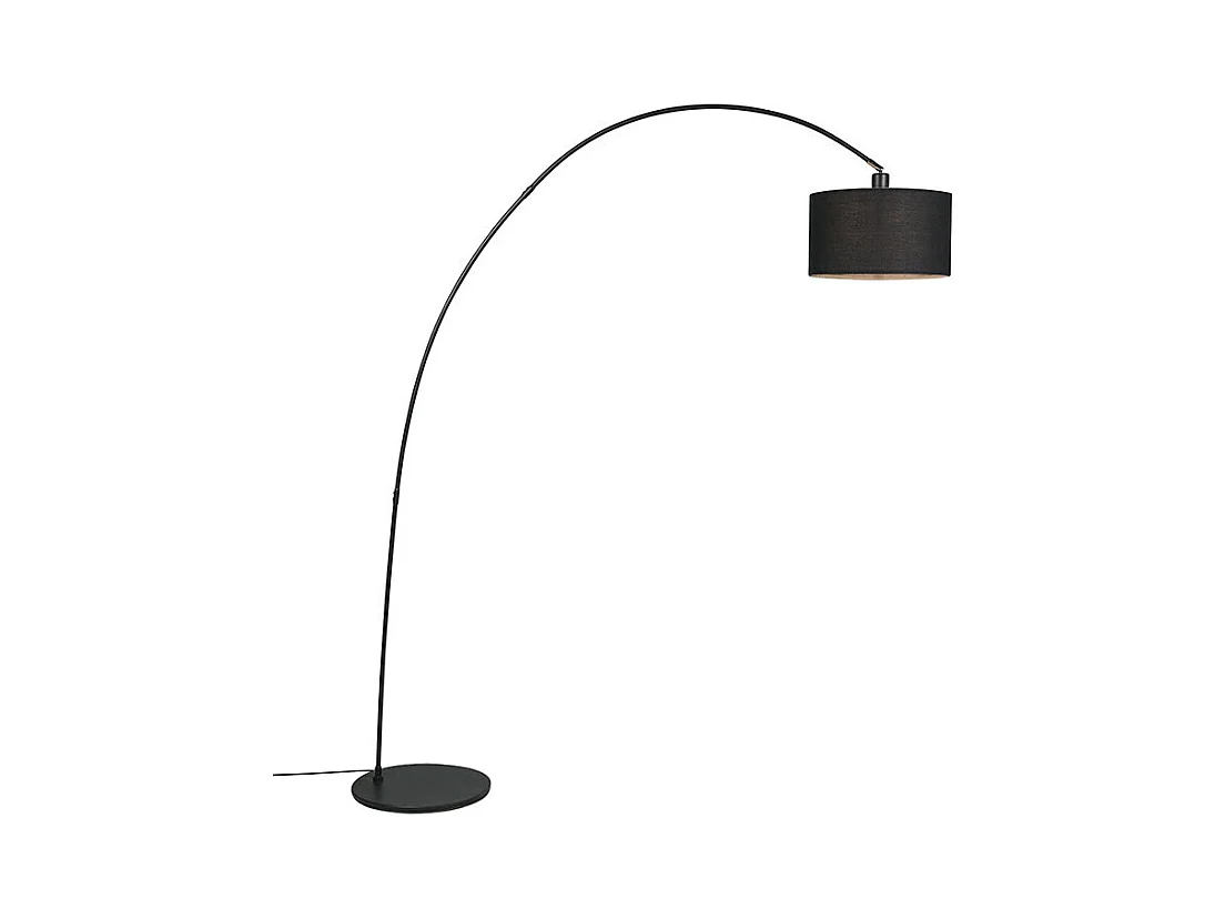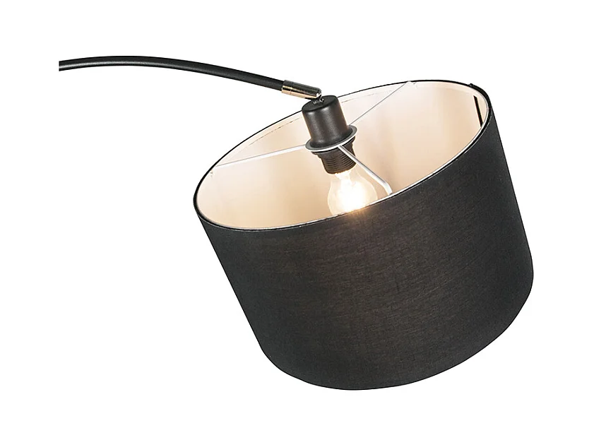 Lampe à arc moderne noire avec abat-jour en tissu noir - Arc Basic