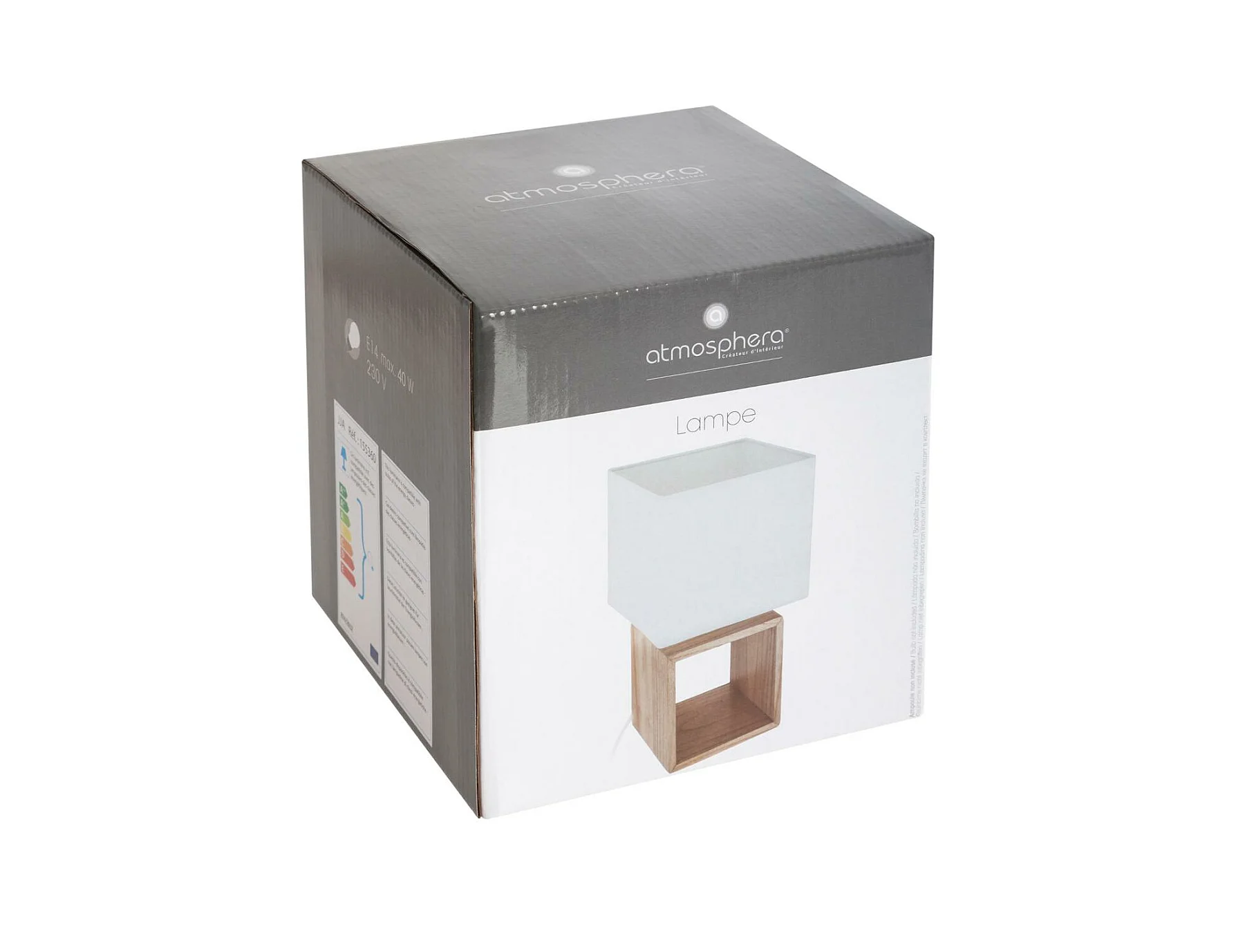 Lampe à poser en Bois et Abat-jour carré H 32 cm