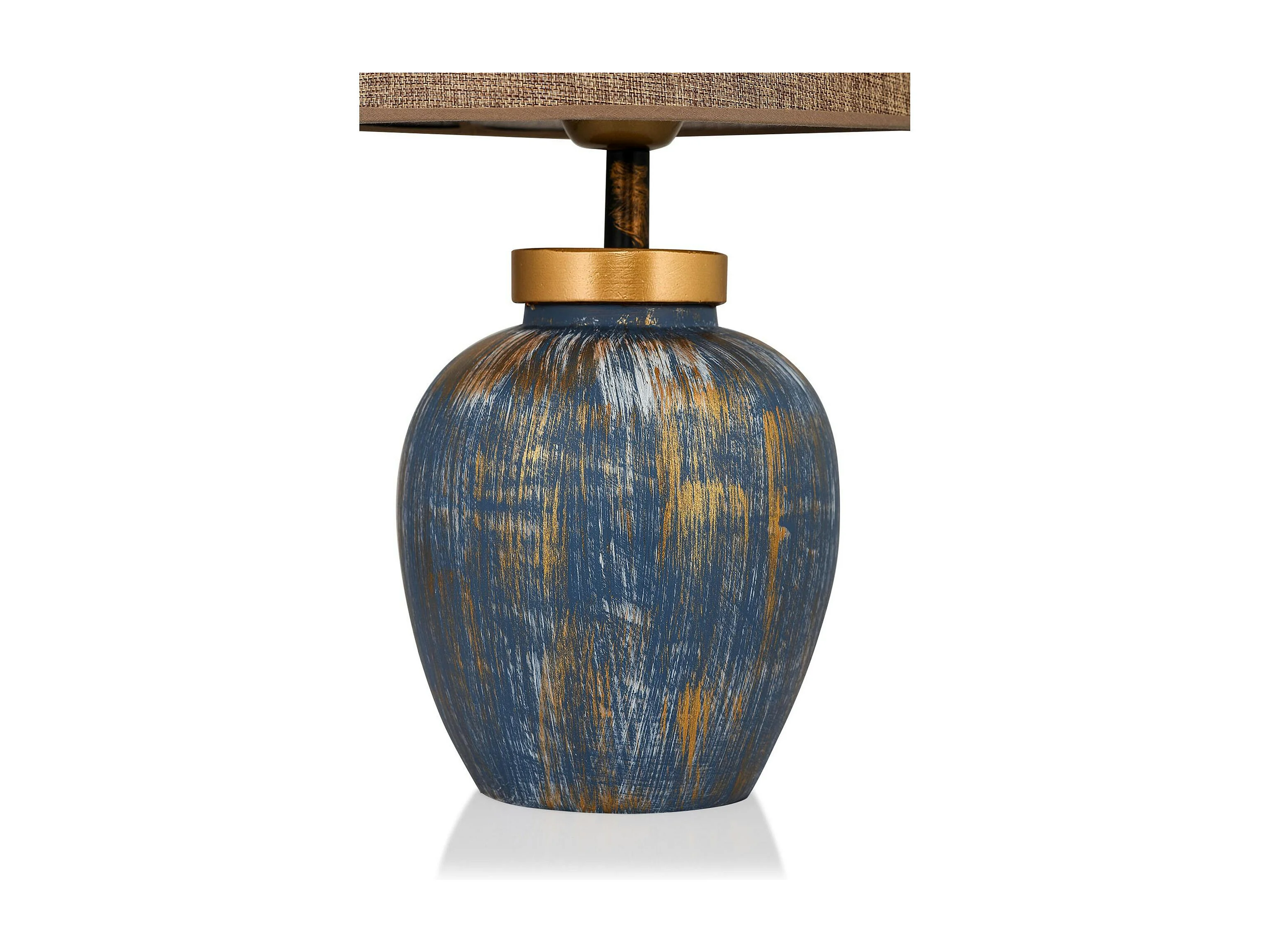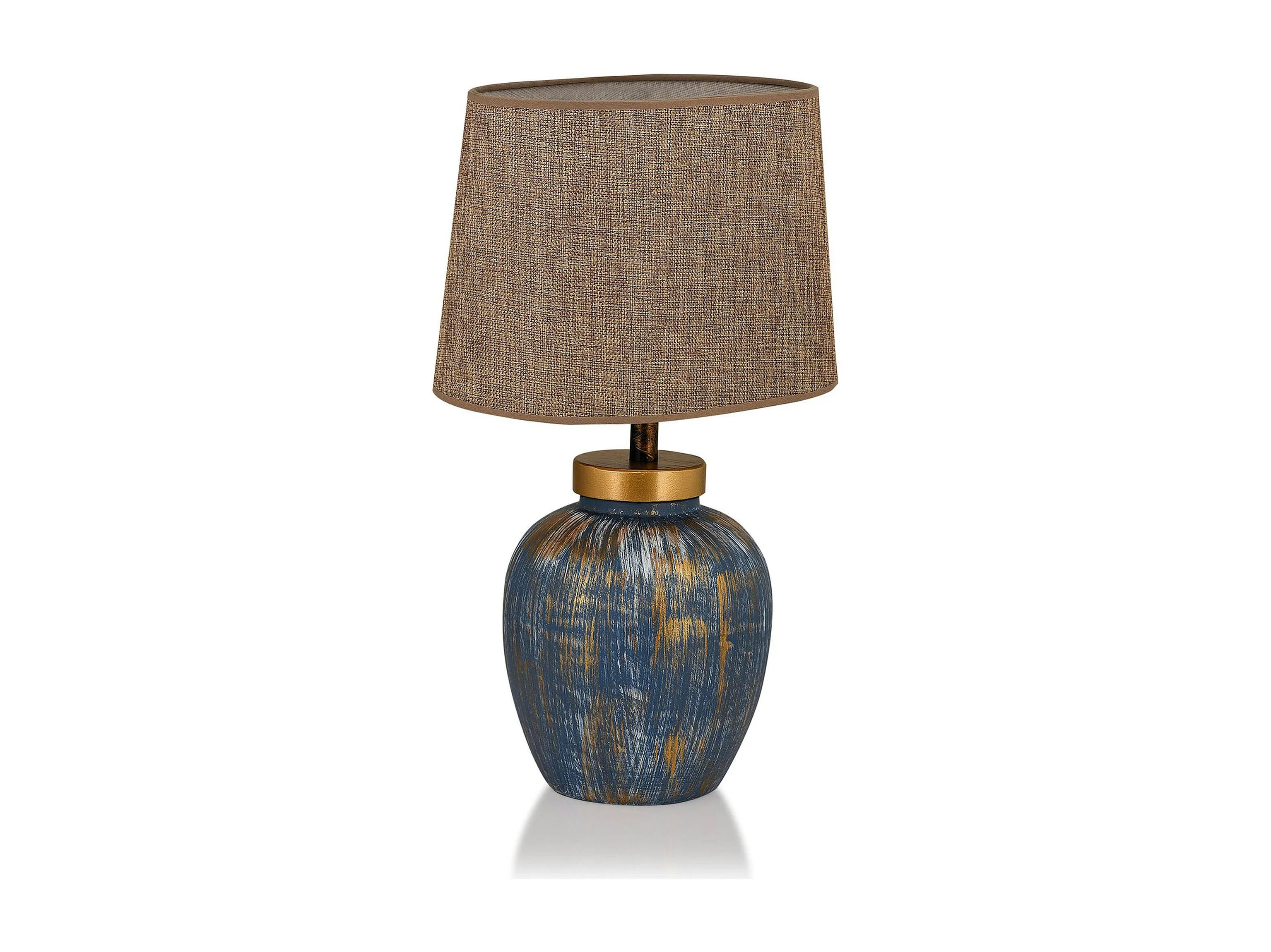 Lampe à poser moderne bleu & or, abat-jour en tissu KARS