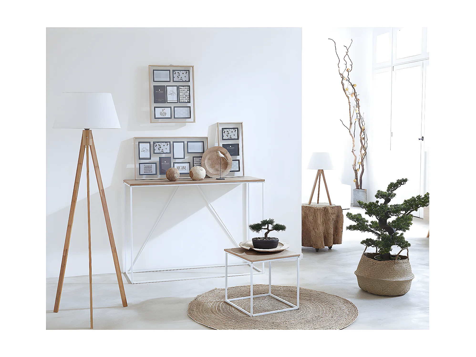 Lampe à poser Pied en Bambou et Abat-jour Blanc H 55 cm