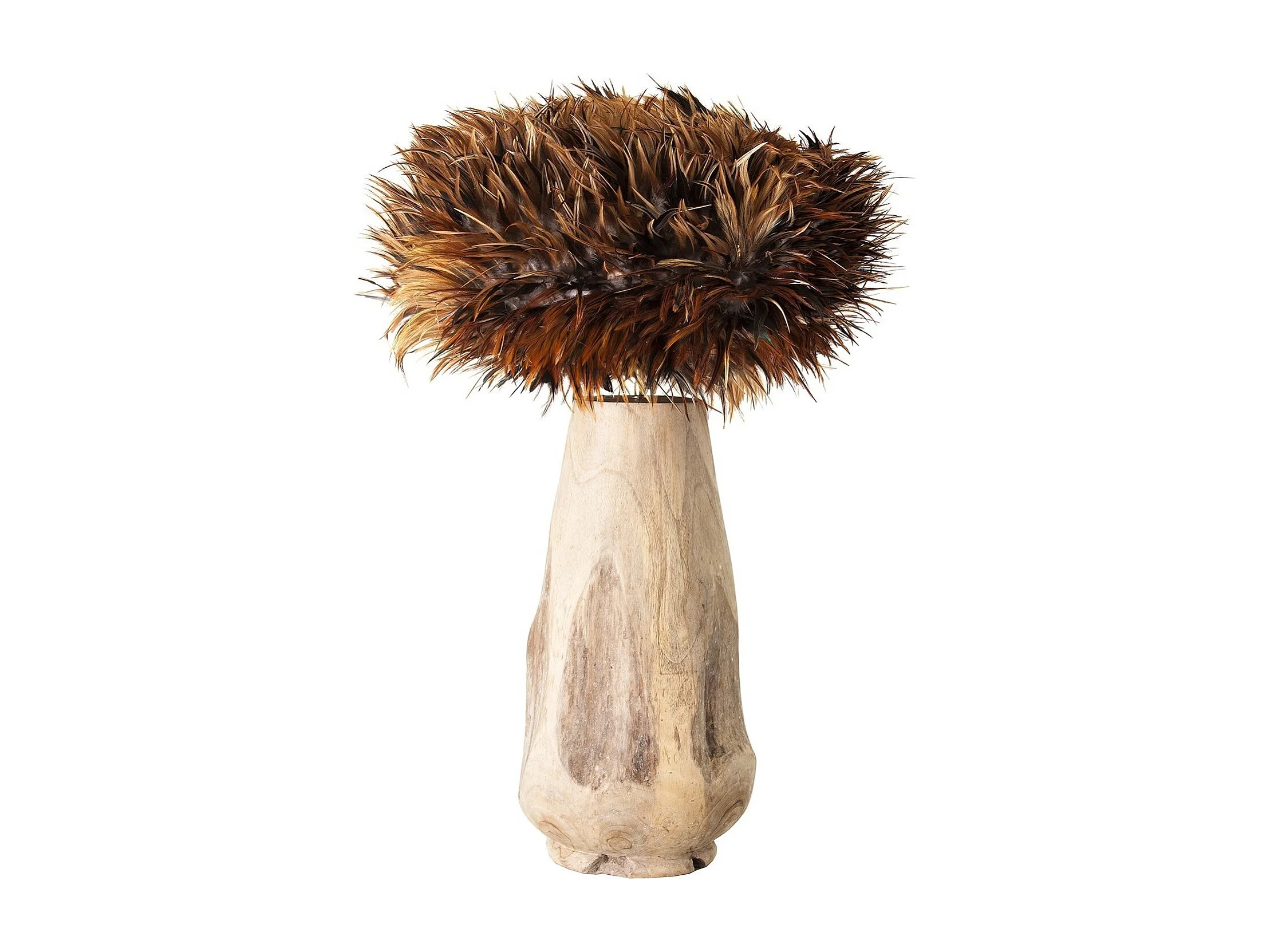 Lampe à poser plumes et teck massif clair vieilli Zoey