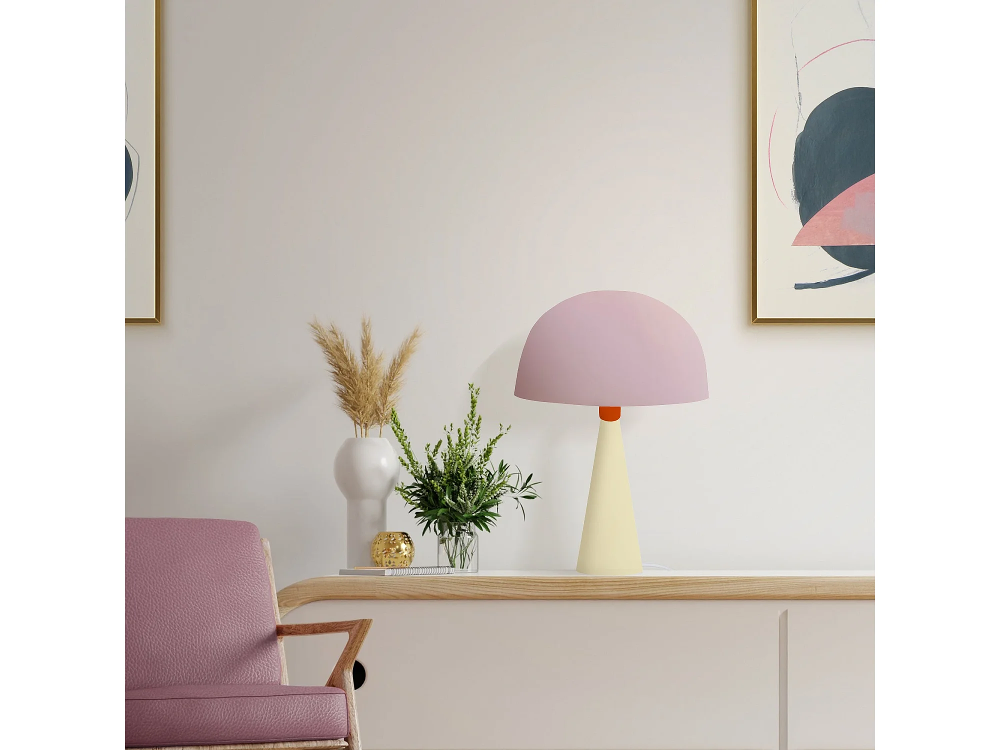 Lampe a Poser TOSEL ,métal,bois,Rose ,H37xD24,5xP24,5cm