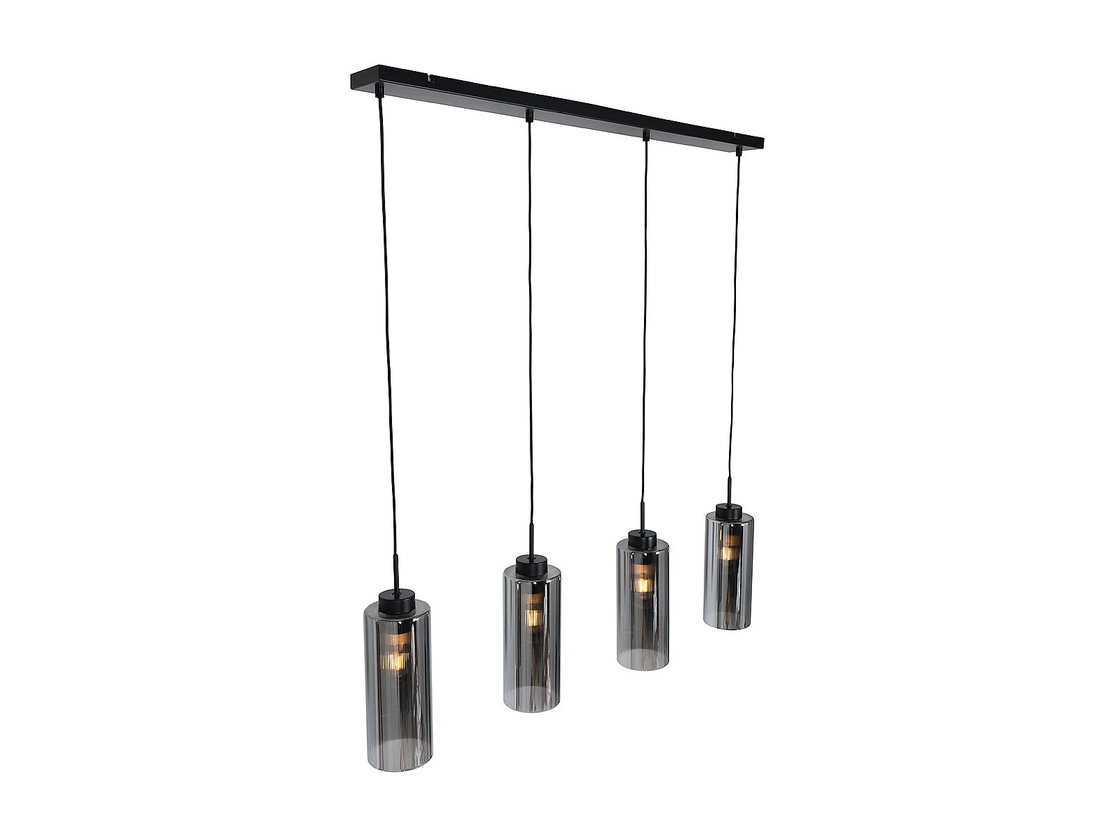 Lampe à suspension Art Déco noire avec verre fumé allongé 4 lumières - Vidro