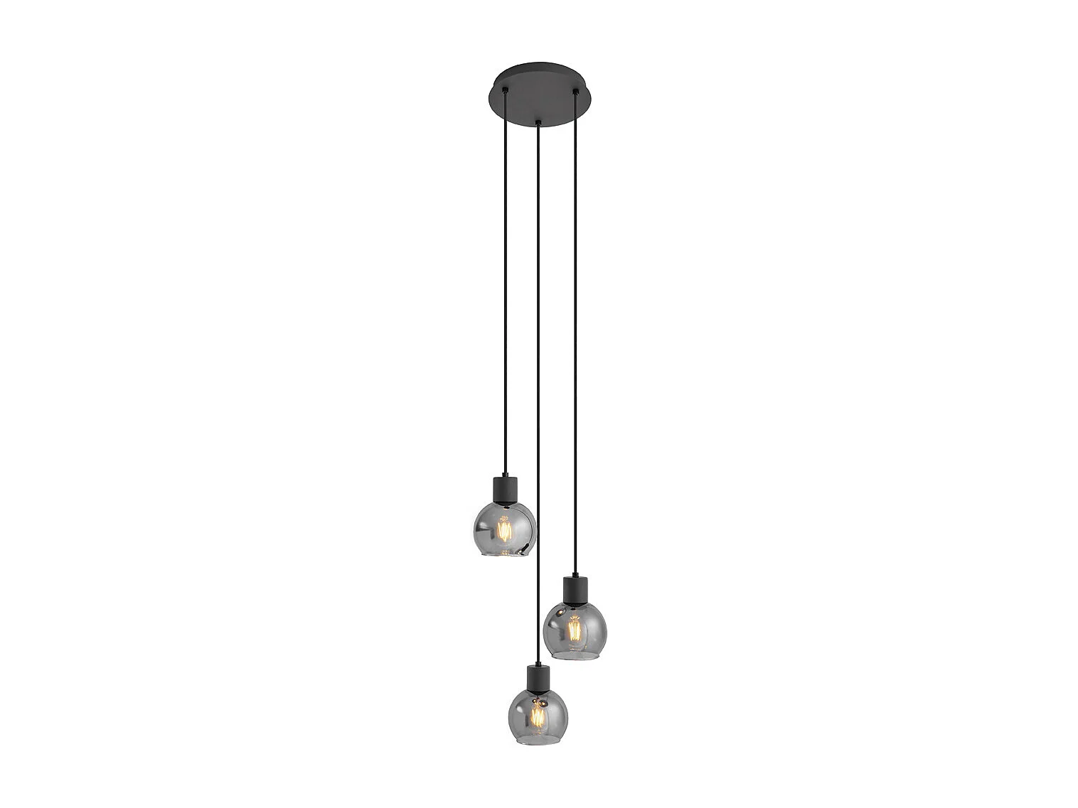 Lampe à suspension Art Déco noire avec verre fumé ronde 3 lumières - Vidro
