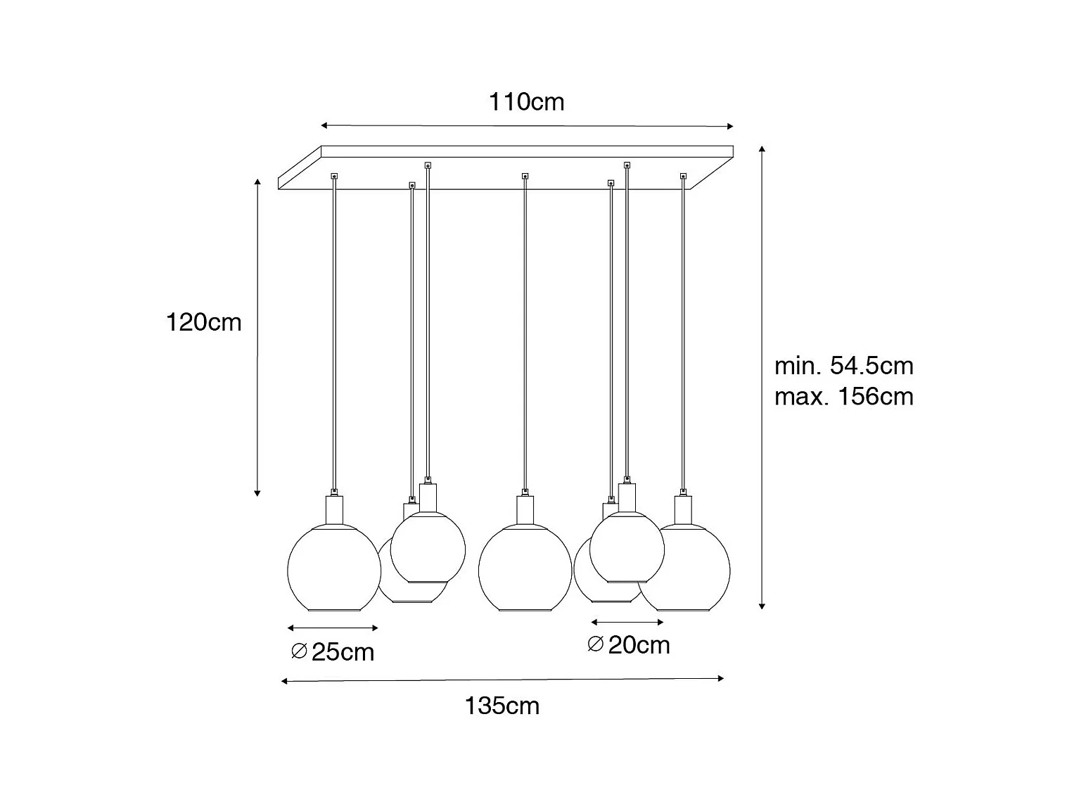 Lampe à suspension design noire verre doré 7 lumières - Bert