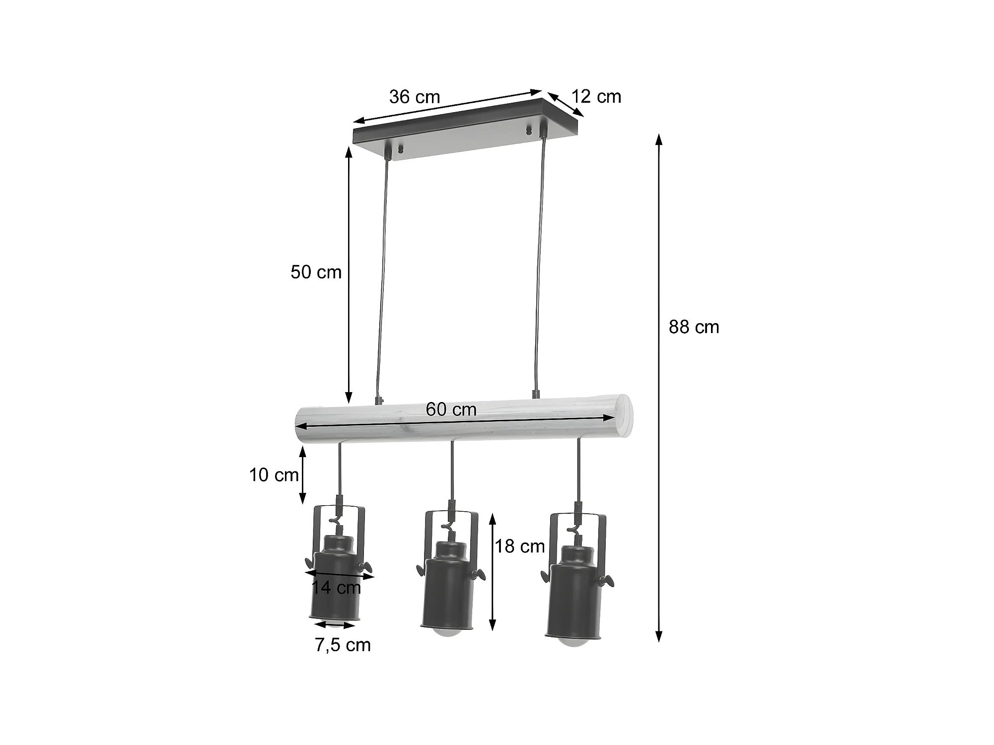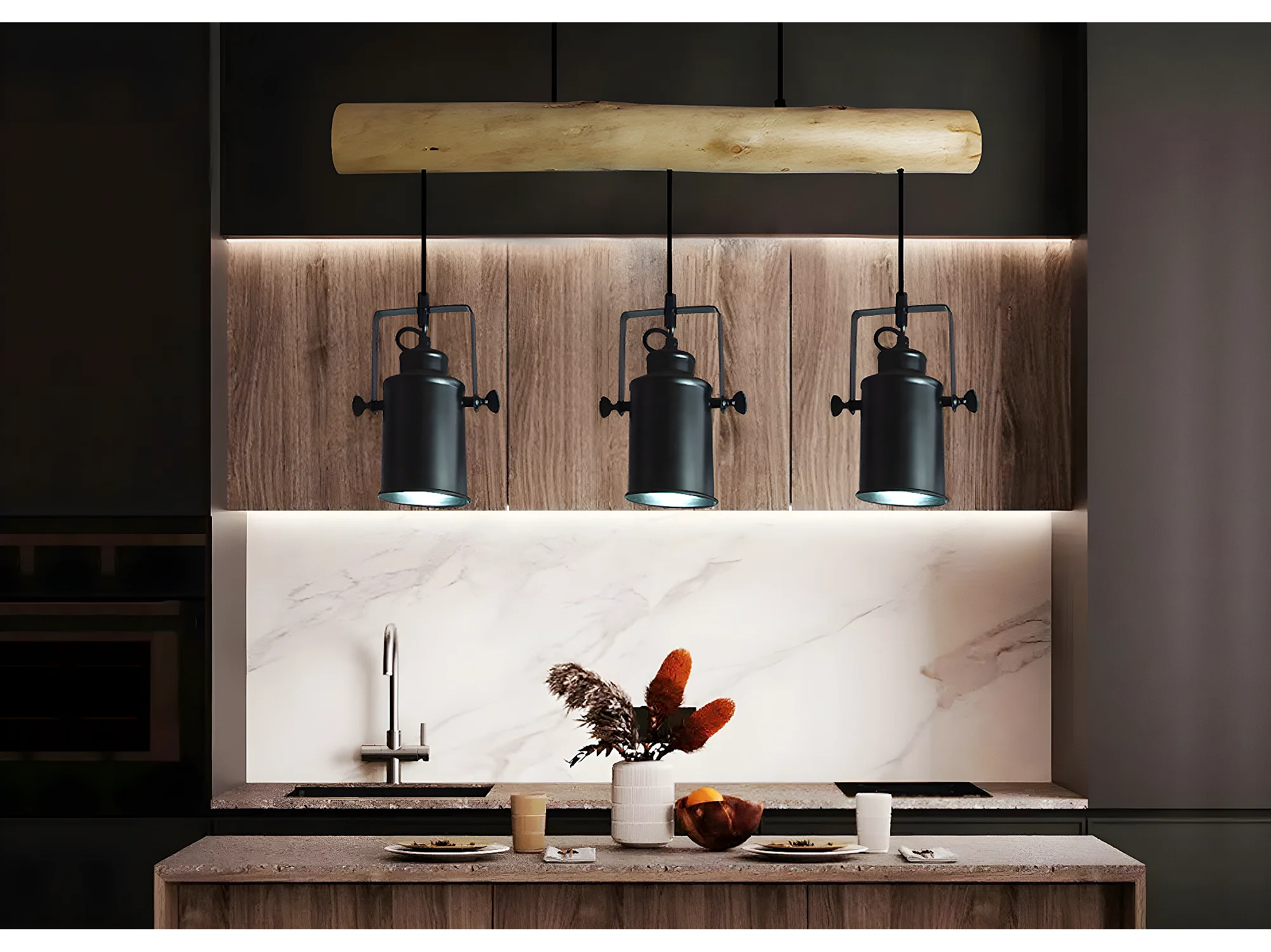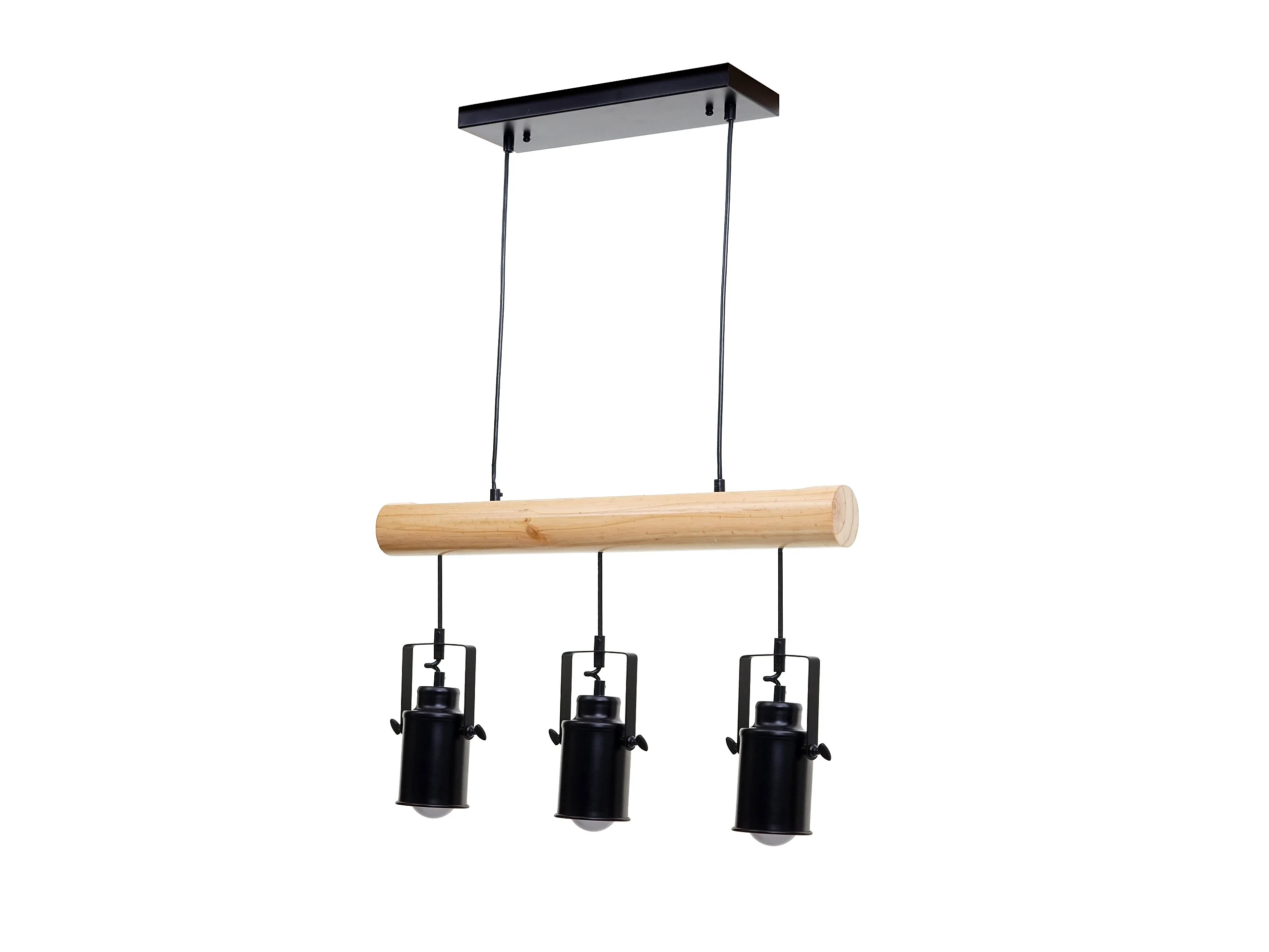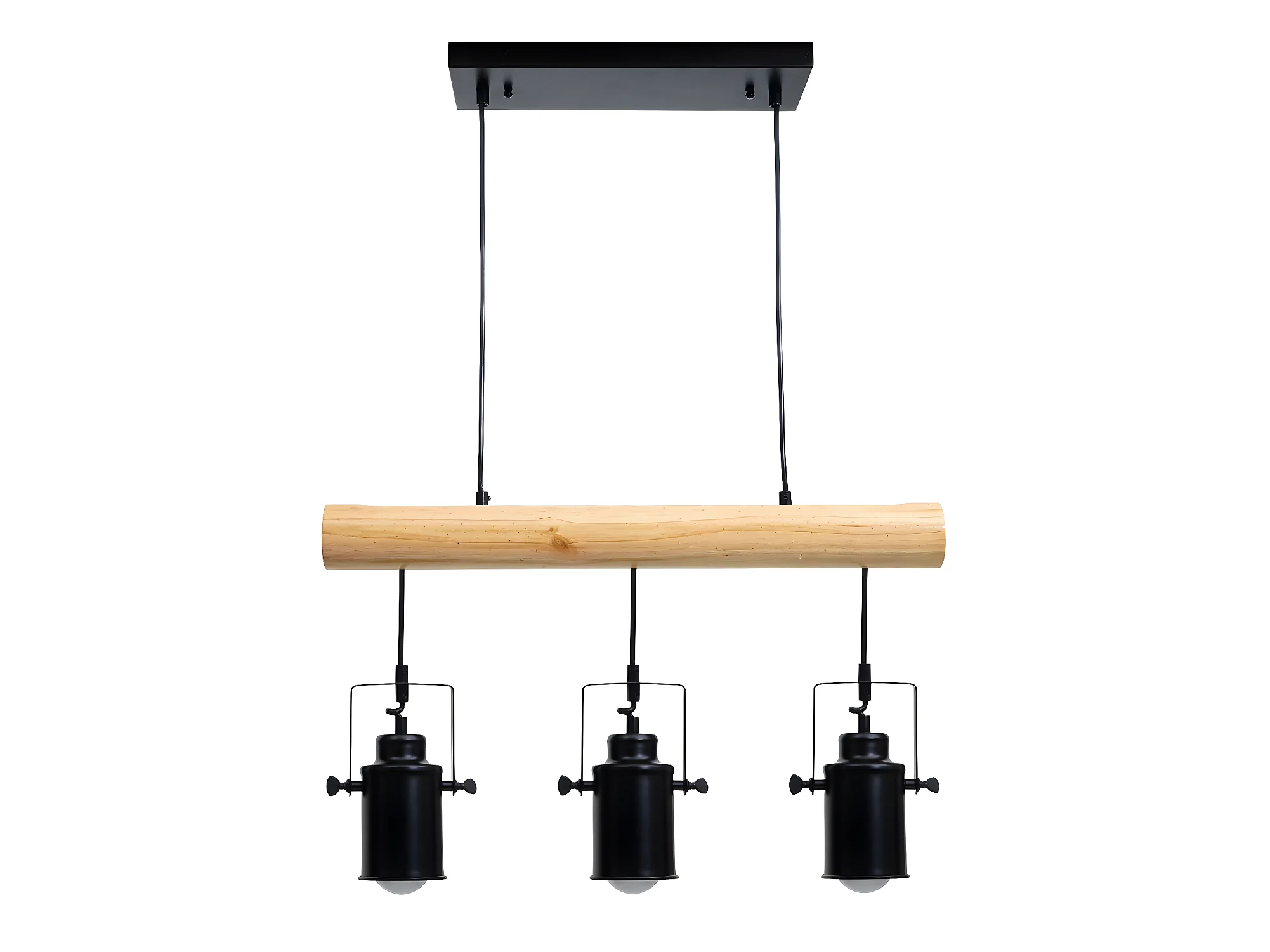Lampe à suspension design vintage industriel bois massif métal noir 3 abat-jour spot 04_0004050