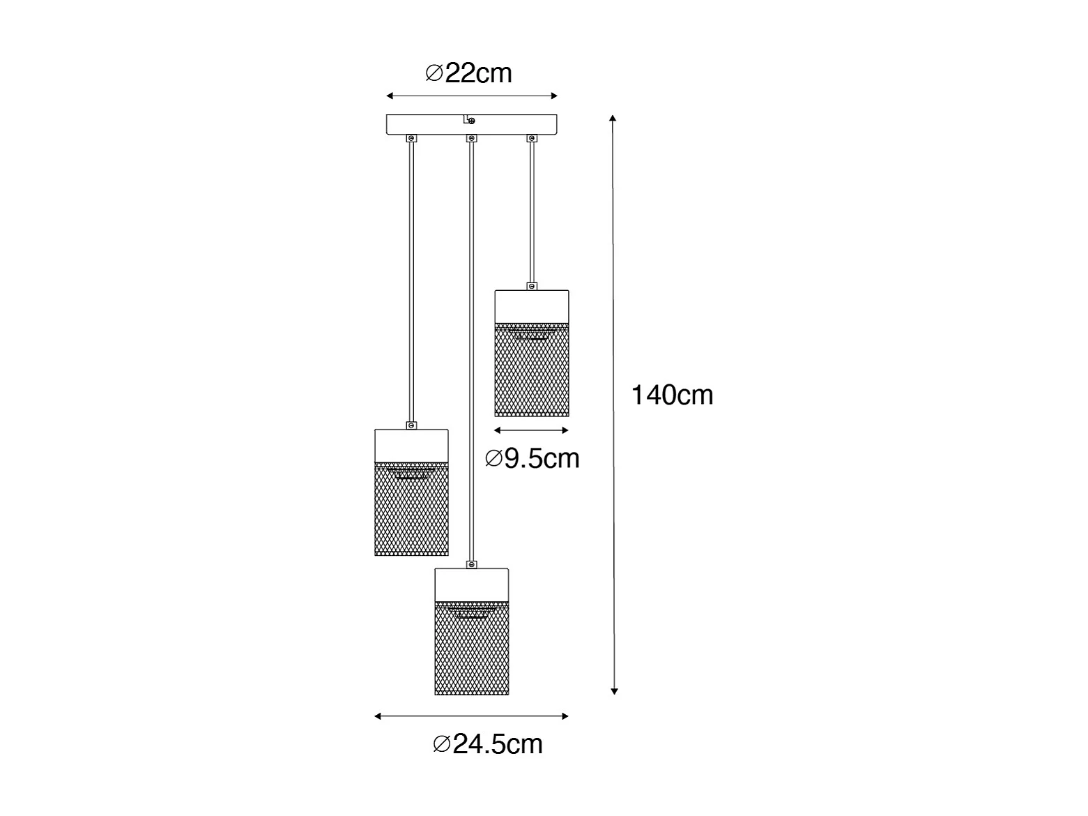 Lampe à suspension industrielle noire avec maille 3 lumières - Carcass