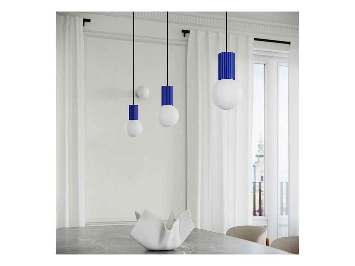 Lampe À Suspension Halo Moderne En Aluminium/Verre - 1 Sources Lumineuses - L.12 X H.120 Cm - Outremer