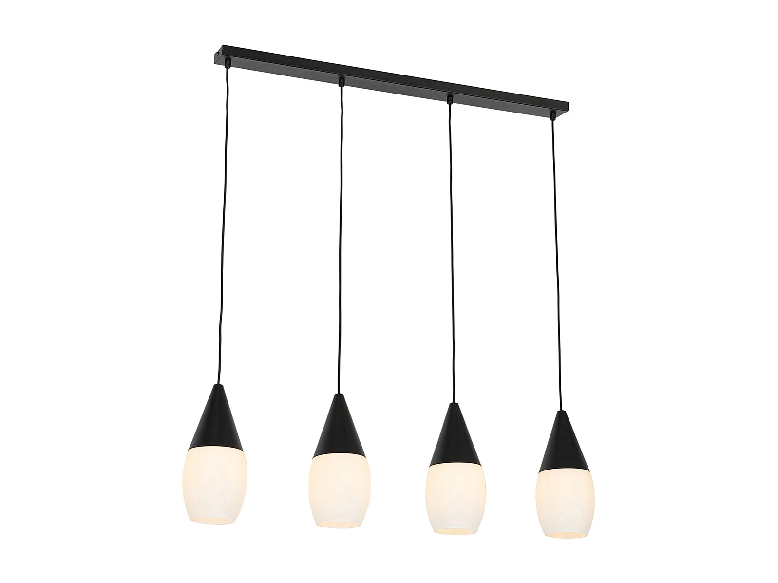 Lampe à suspension moderne noire avec verre opale 4 lumières - Drop