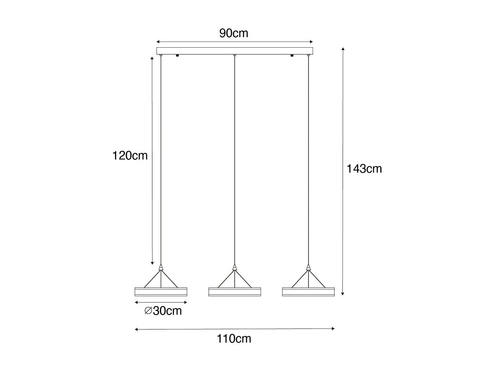 Lampe à suspension oblongue en laiton avec LED dimmable en 3 étapes 3 lumières - Lyani
