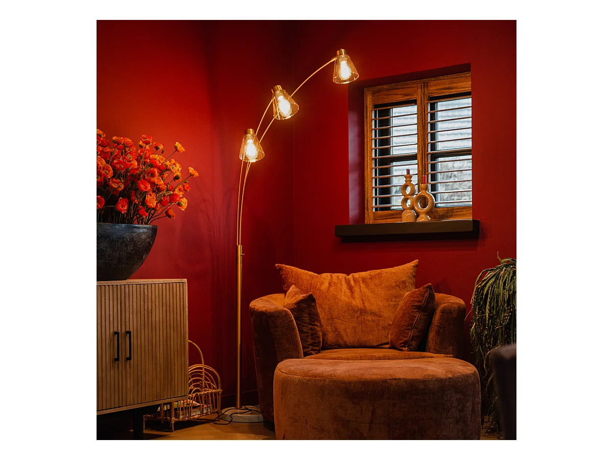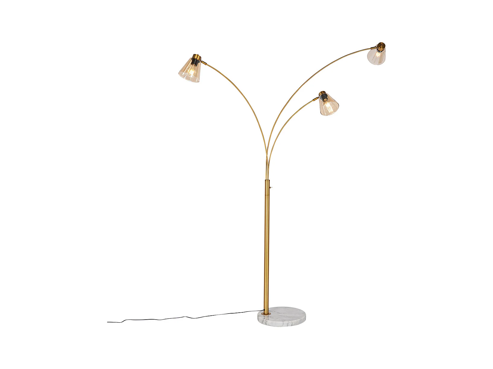 Lampe arc bronze avec marbre et verre ambré 3 lumières - Nina